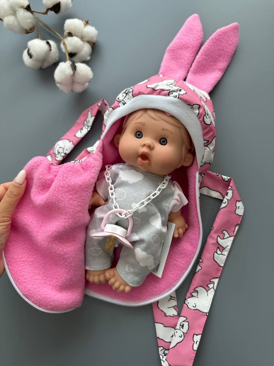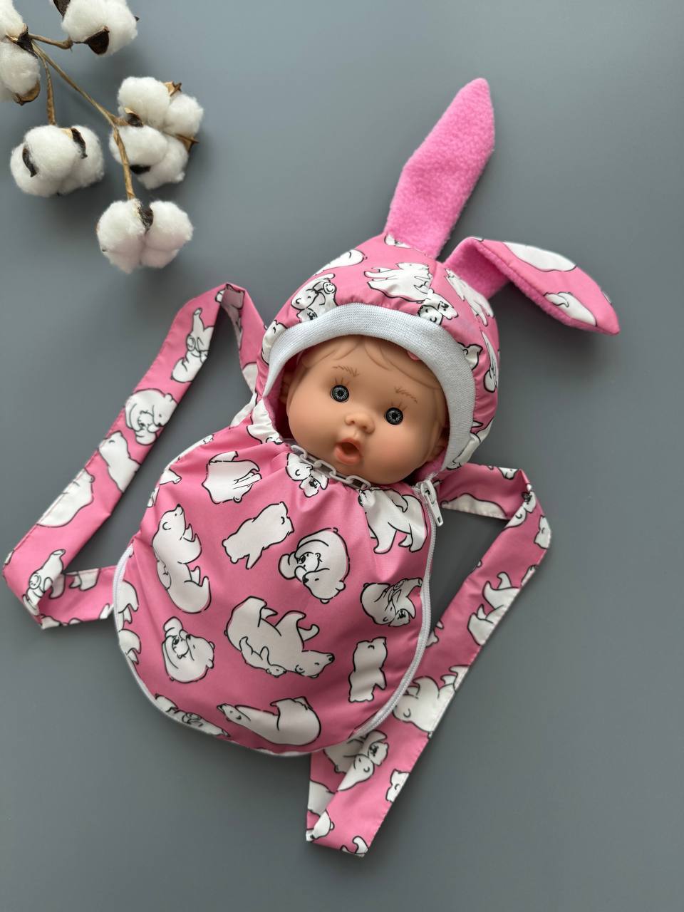 Тёплый конверт, переноска и рюкзачок/слинг - 3 в 1. Из курточной ткани, с флисовым подкладом. По размеру подходит для всех пупсиков до 28 см.