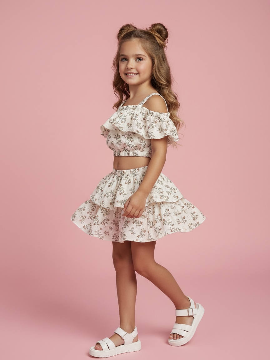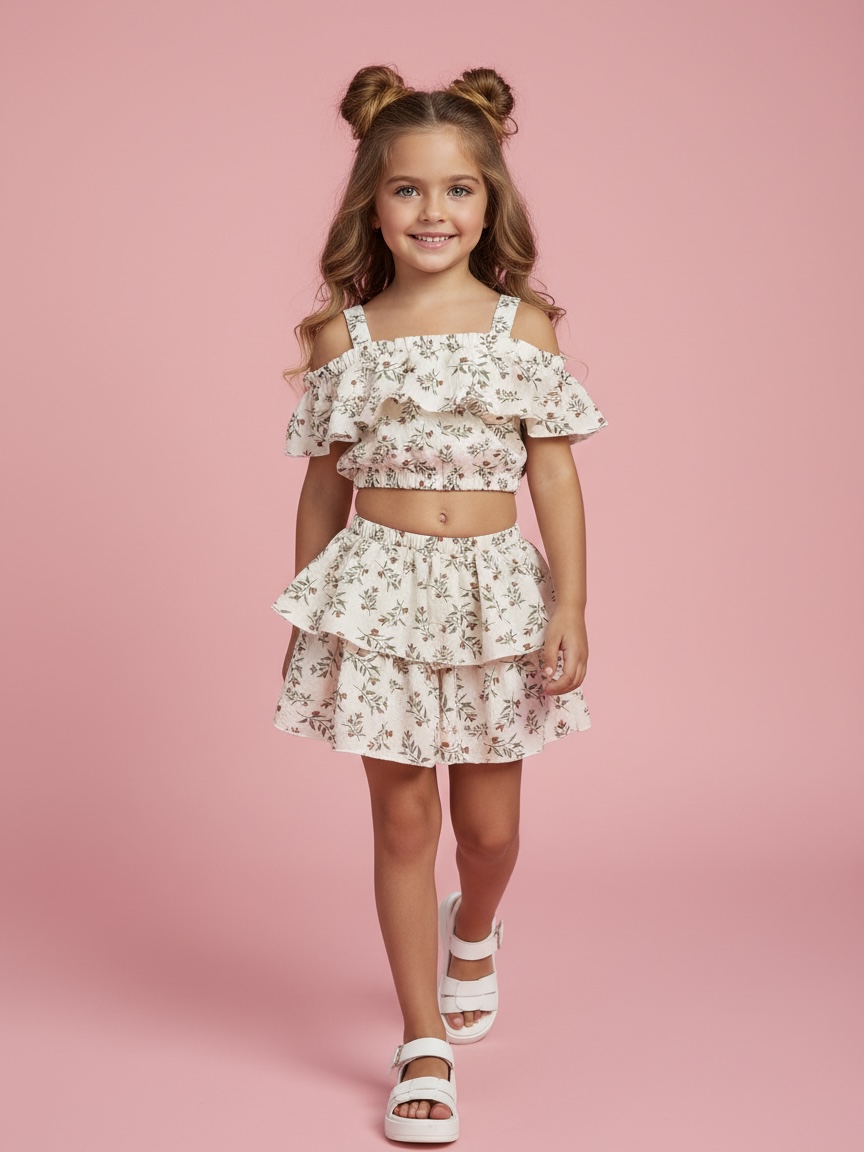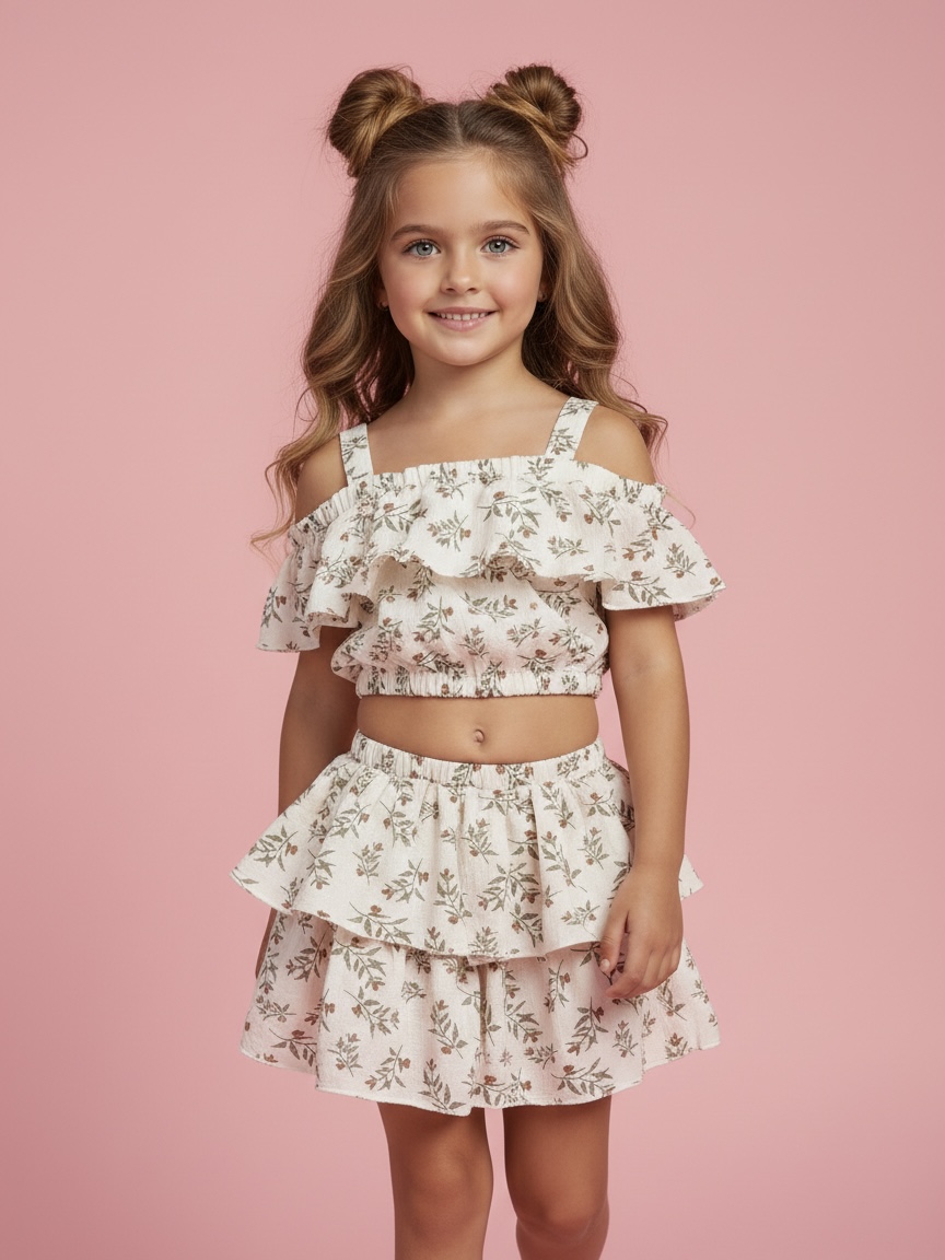 Идеальный летний комплект: укороченный топ и юбка-шорты. Прямо в юбку аккуратно вшиты шортики, чтобы девочкам было комфортно на все 100% - бегать, кружиться, играть и чувствовать себя уверенно. Это тот самый костюм, в котором хочется прожить всё лето! Воздушный 100% натуральный муслин, пышная юбочка с вшитыми шортиками, открытые плечики и идеальная посадка.