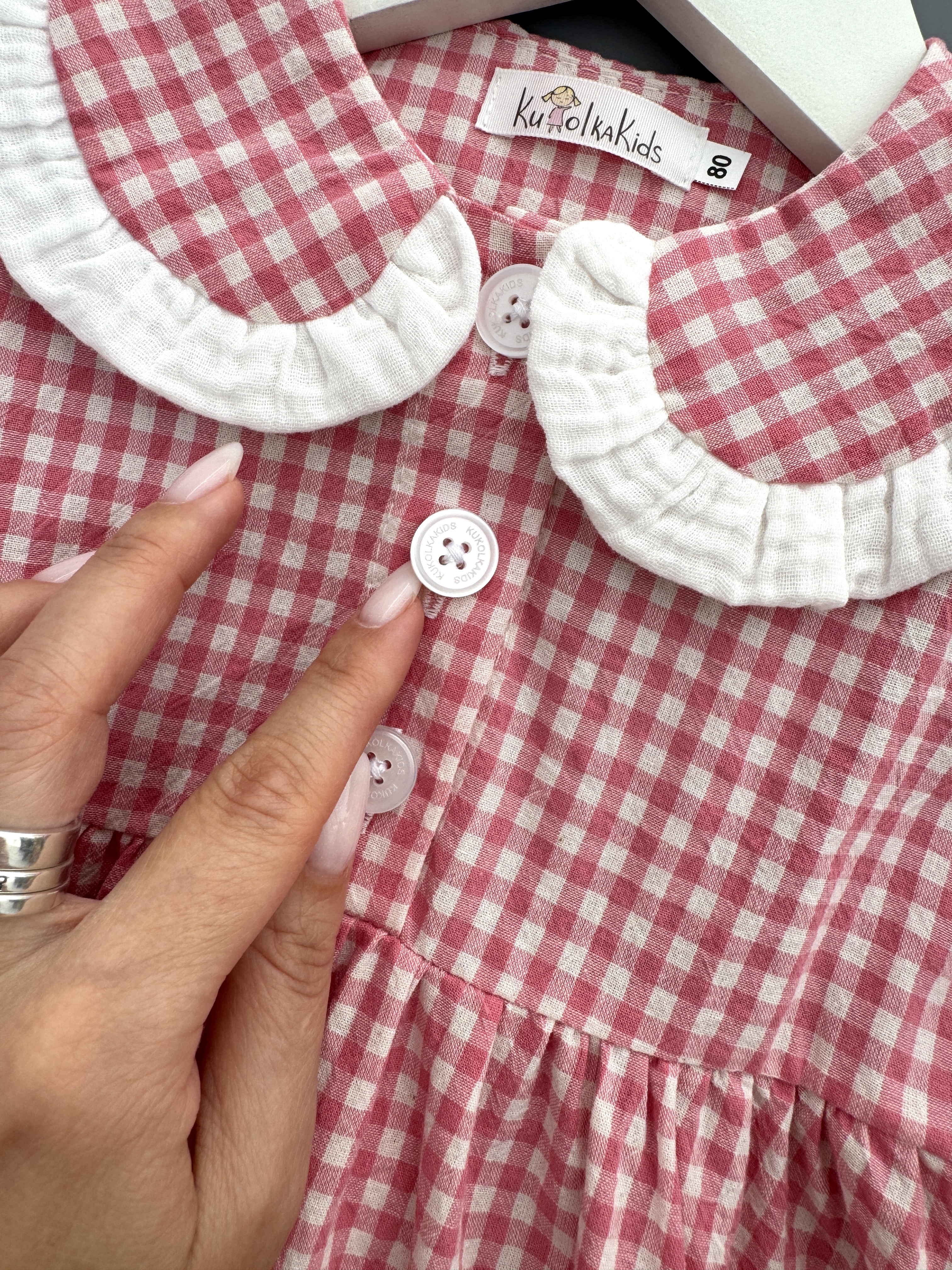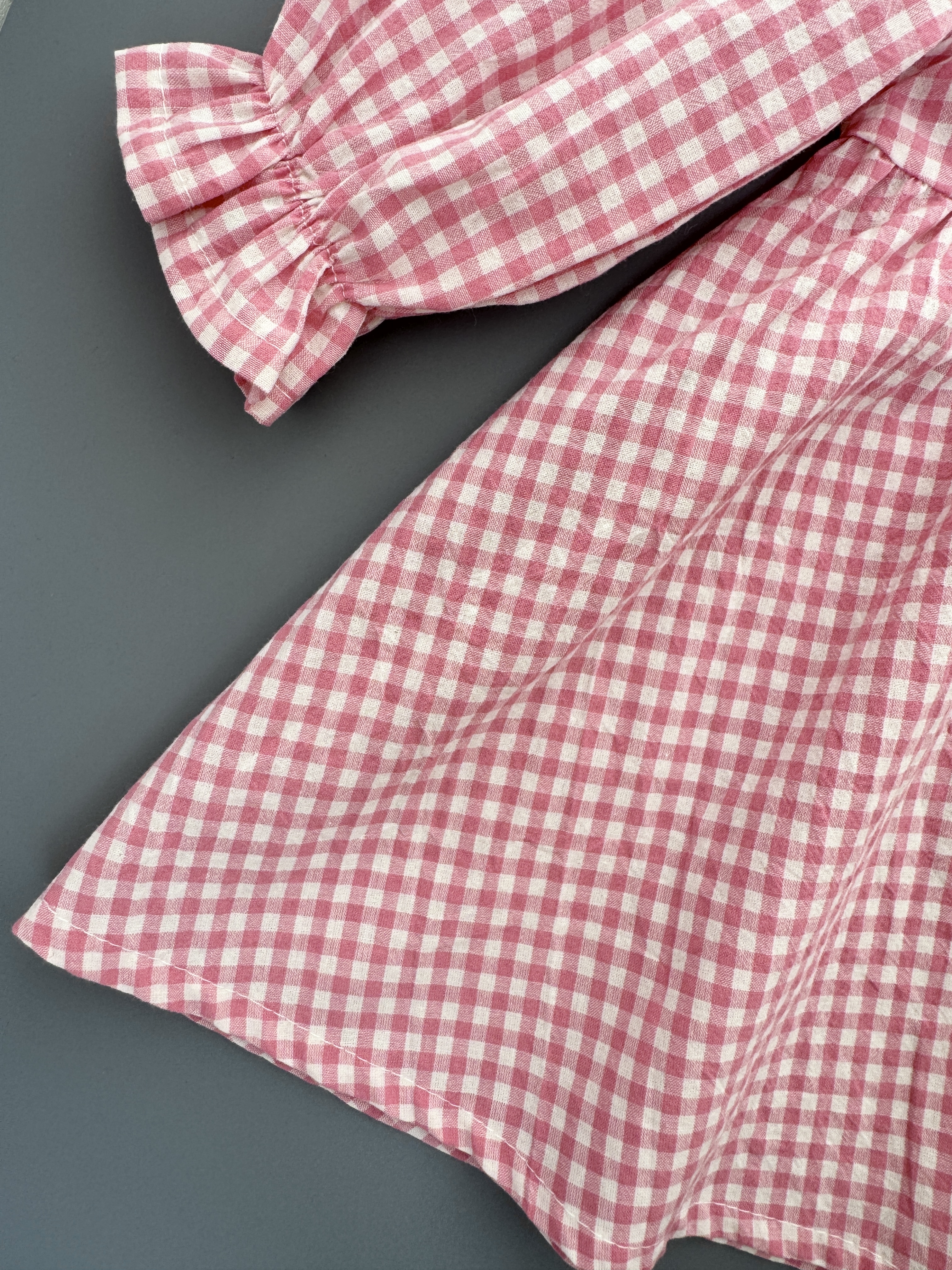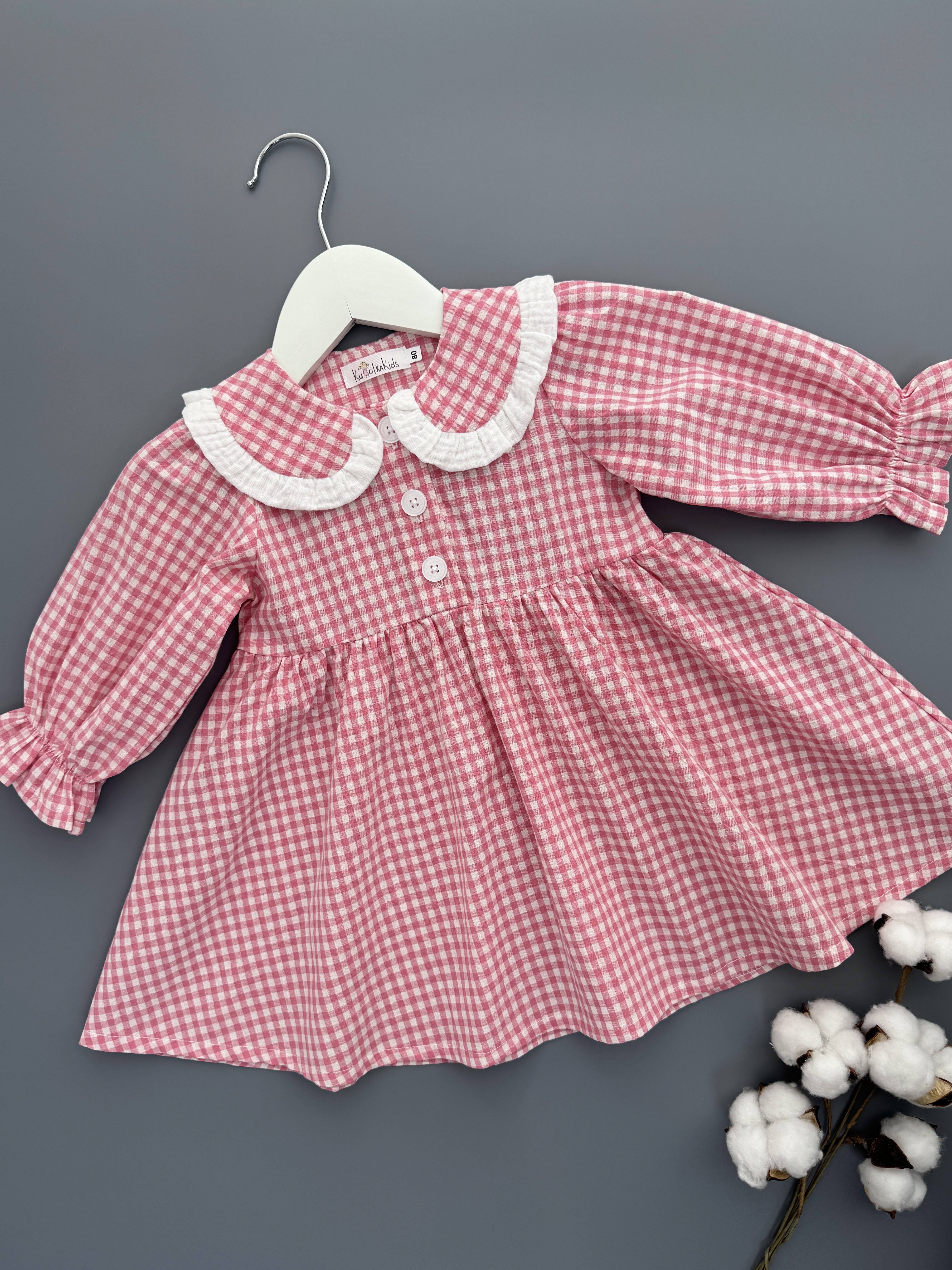 Платье из варёного хлопка в клетку виши, цвет розовый