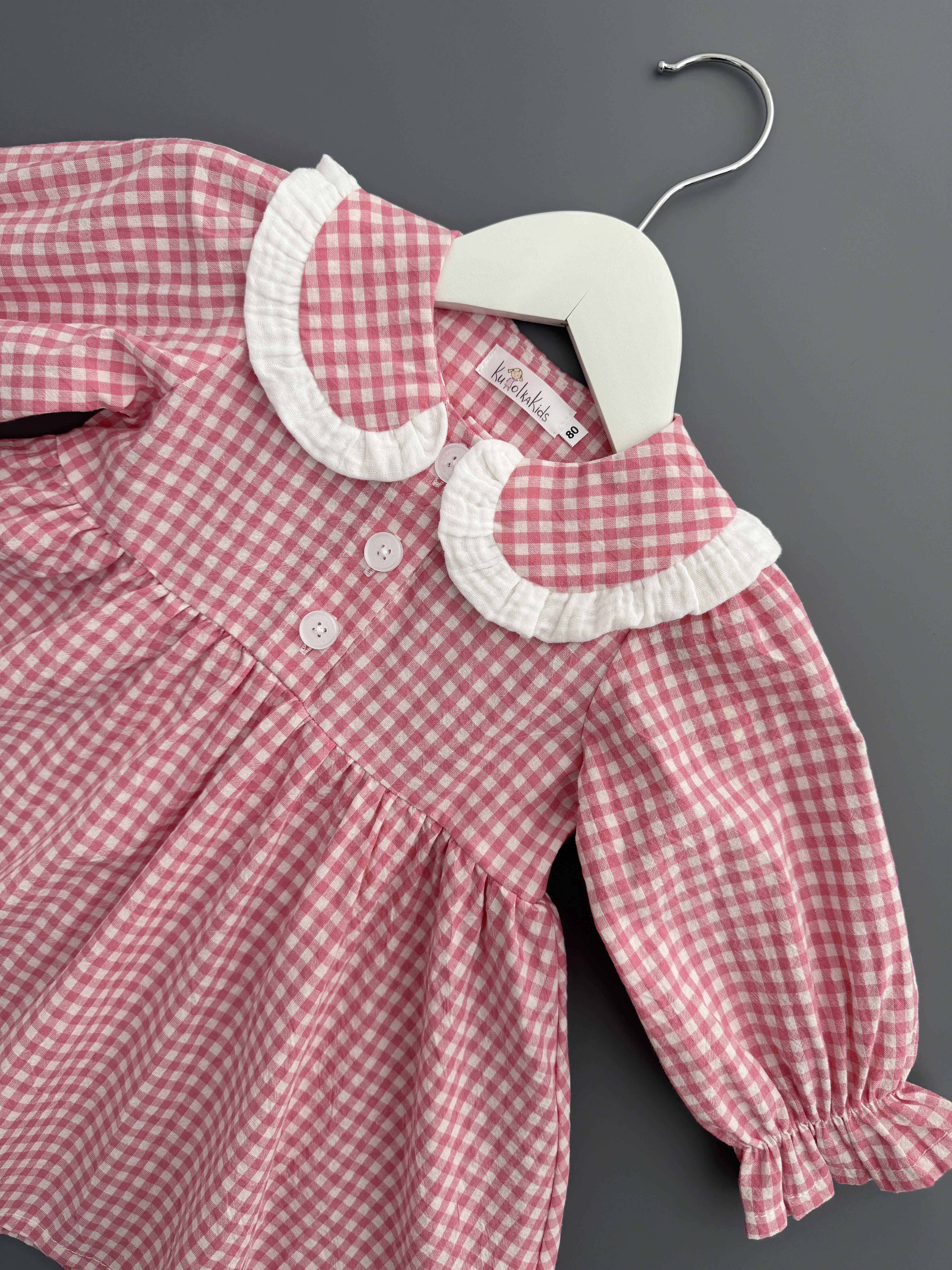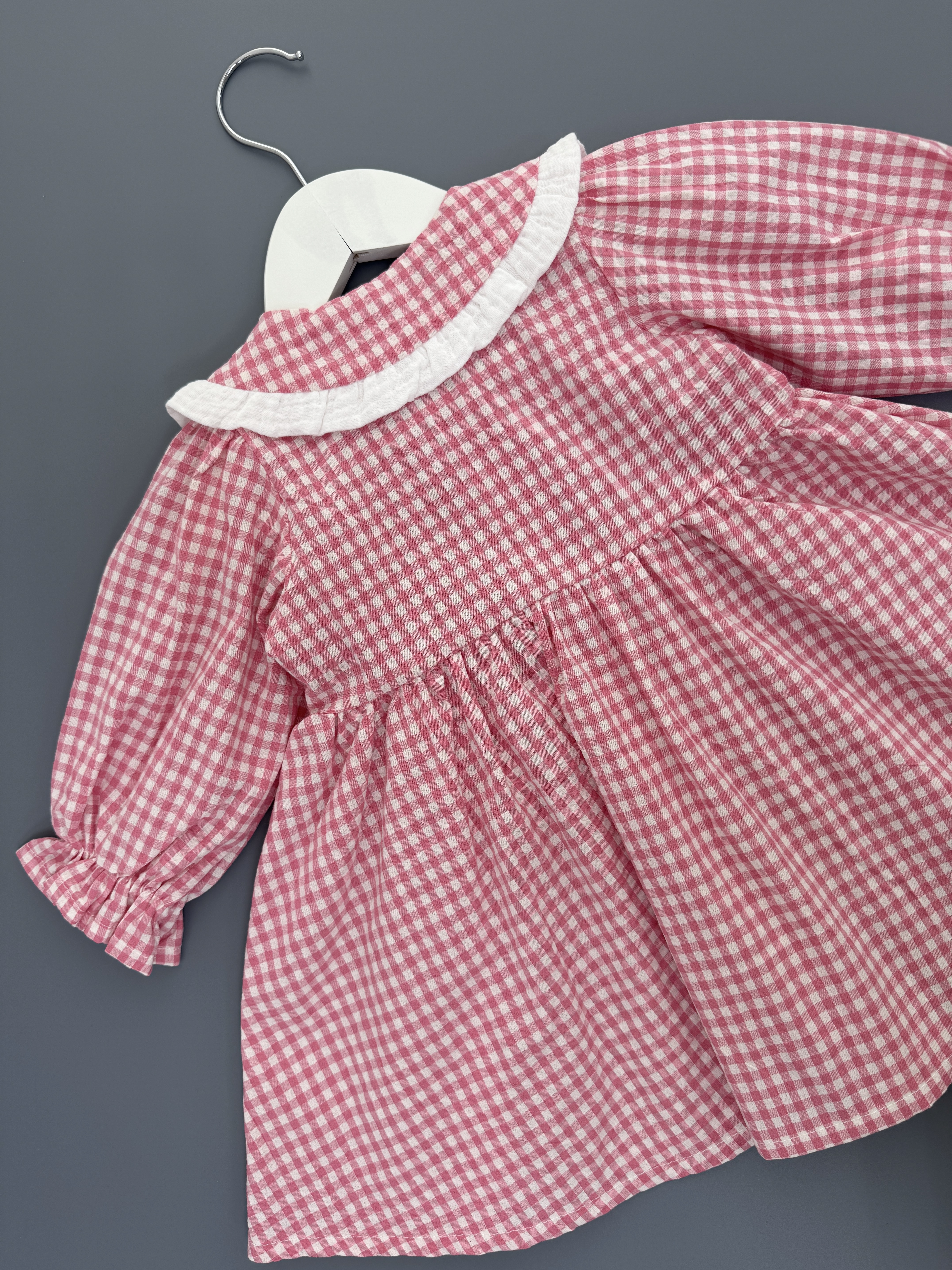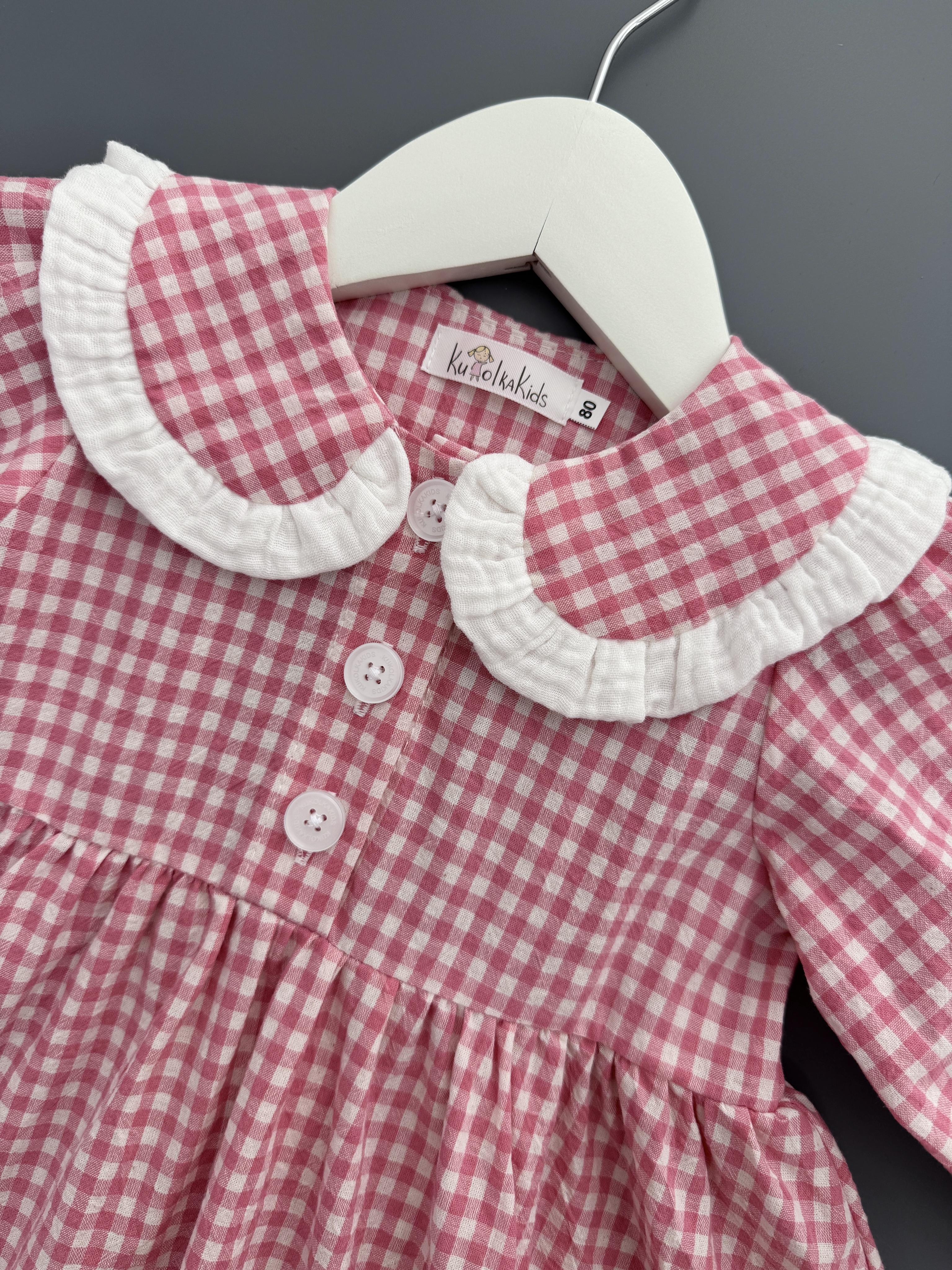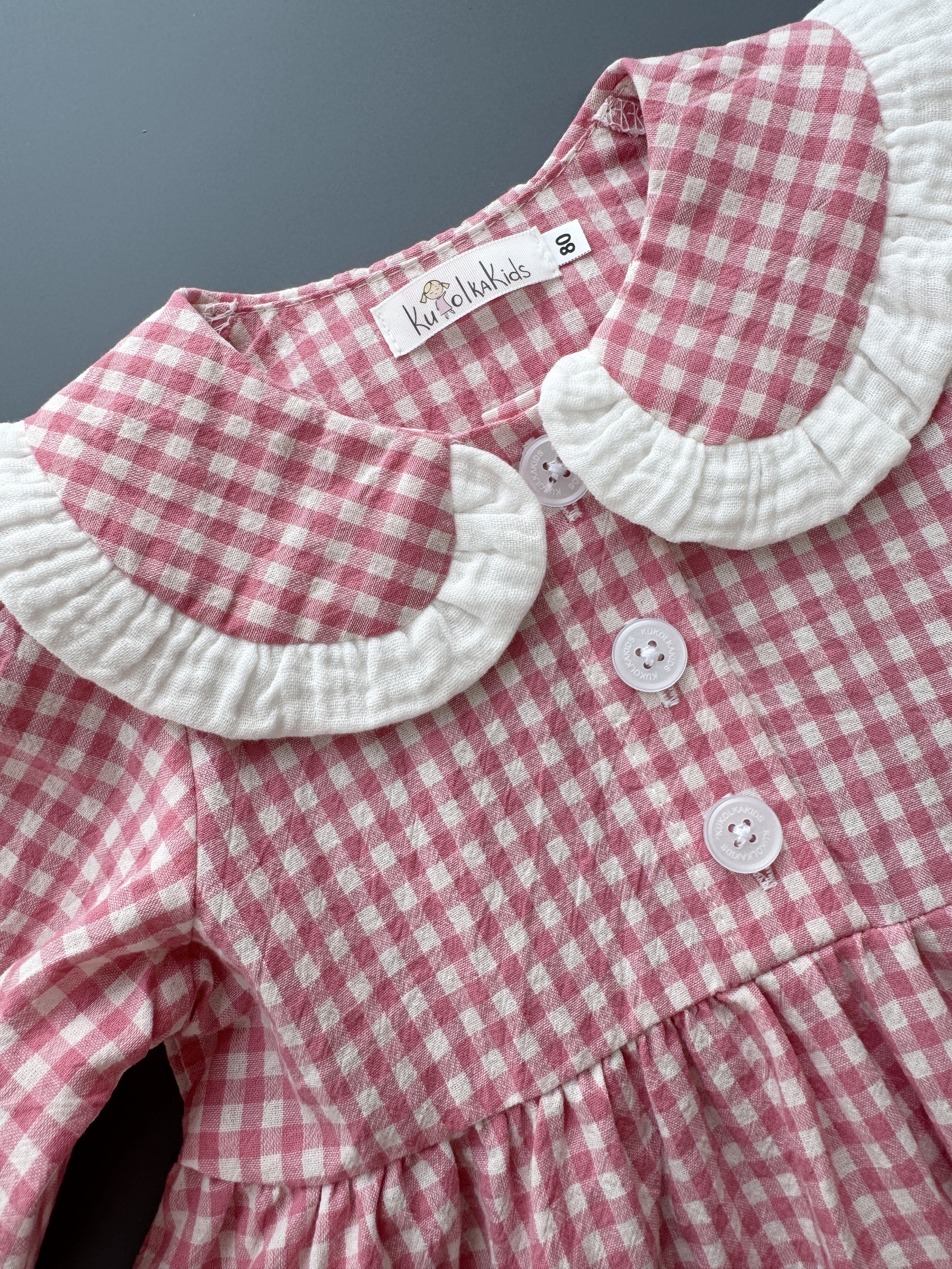 Платье из варёного хлопка в клетку виши, цвет розовый