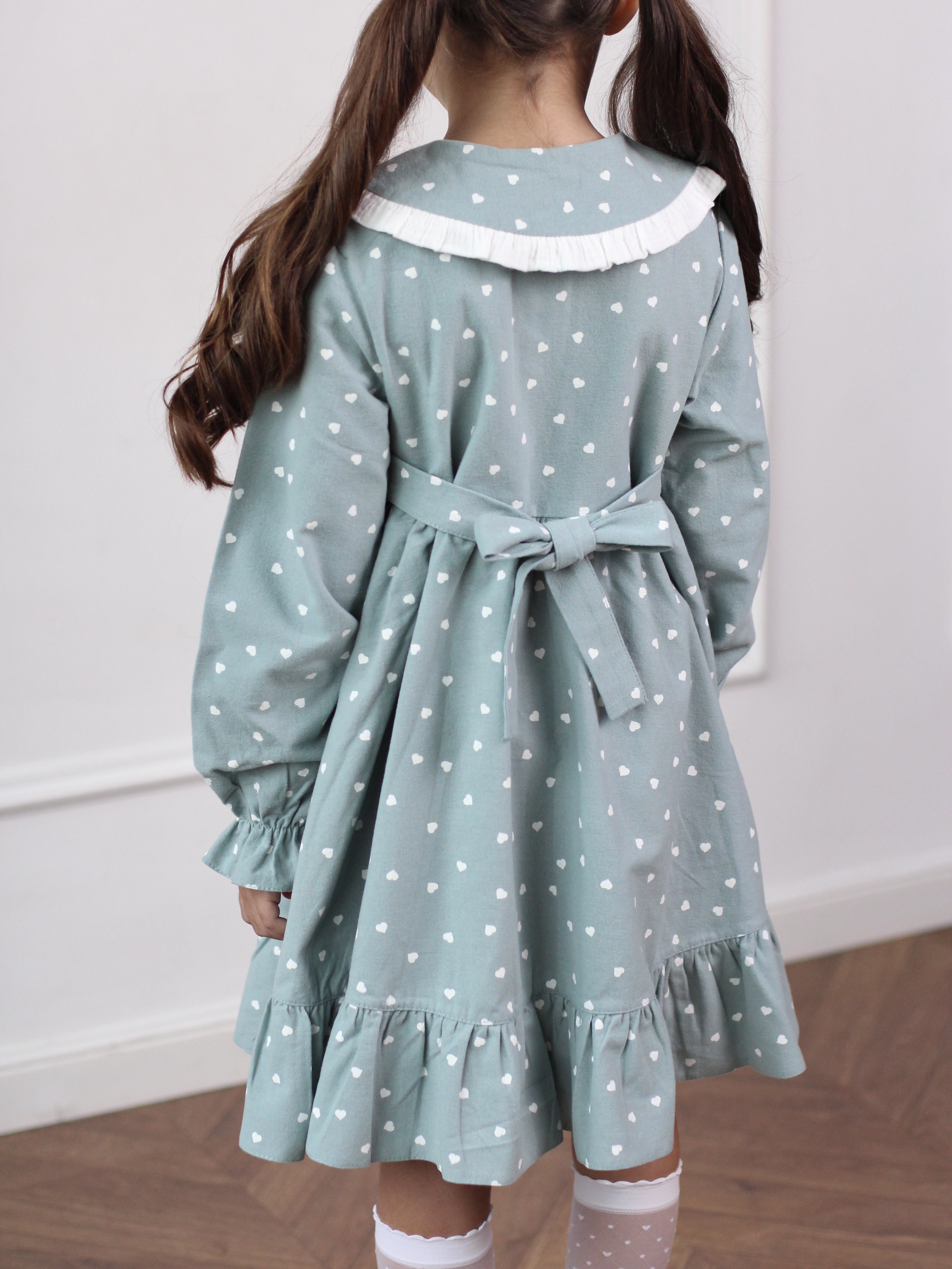 • Детали: двойной воротничок с рюшей из белого муслина придаёт кукольное очарование.