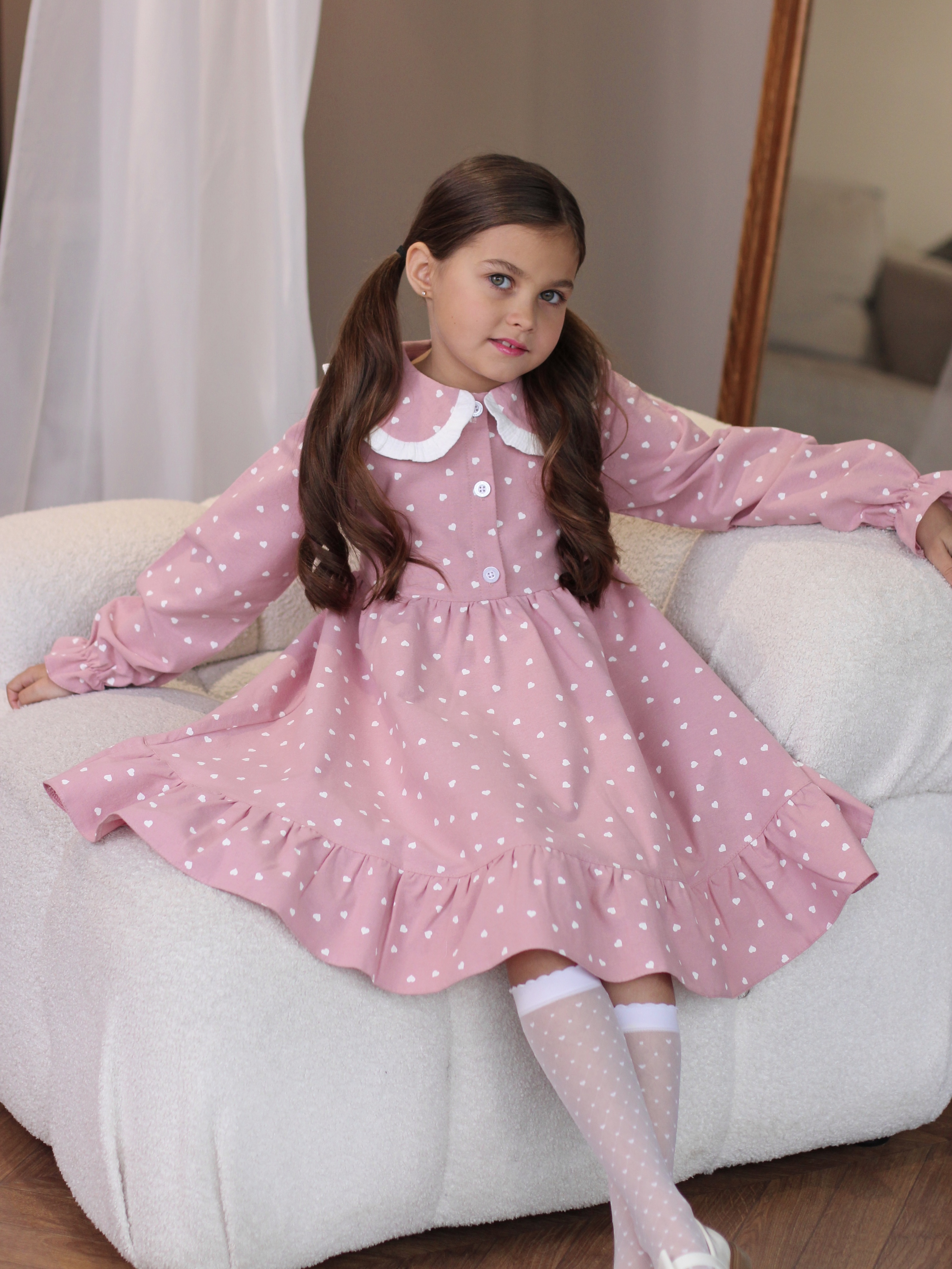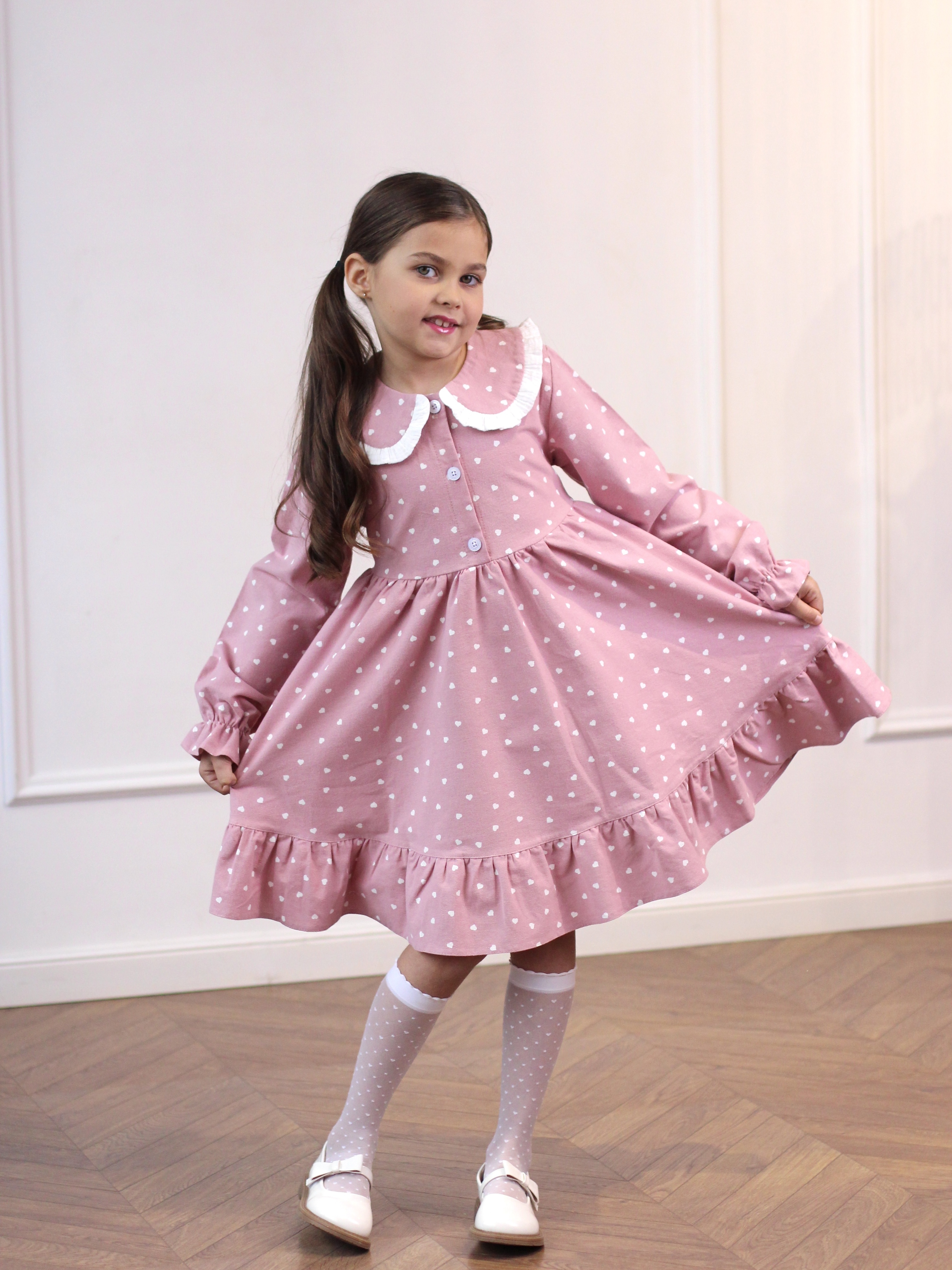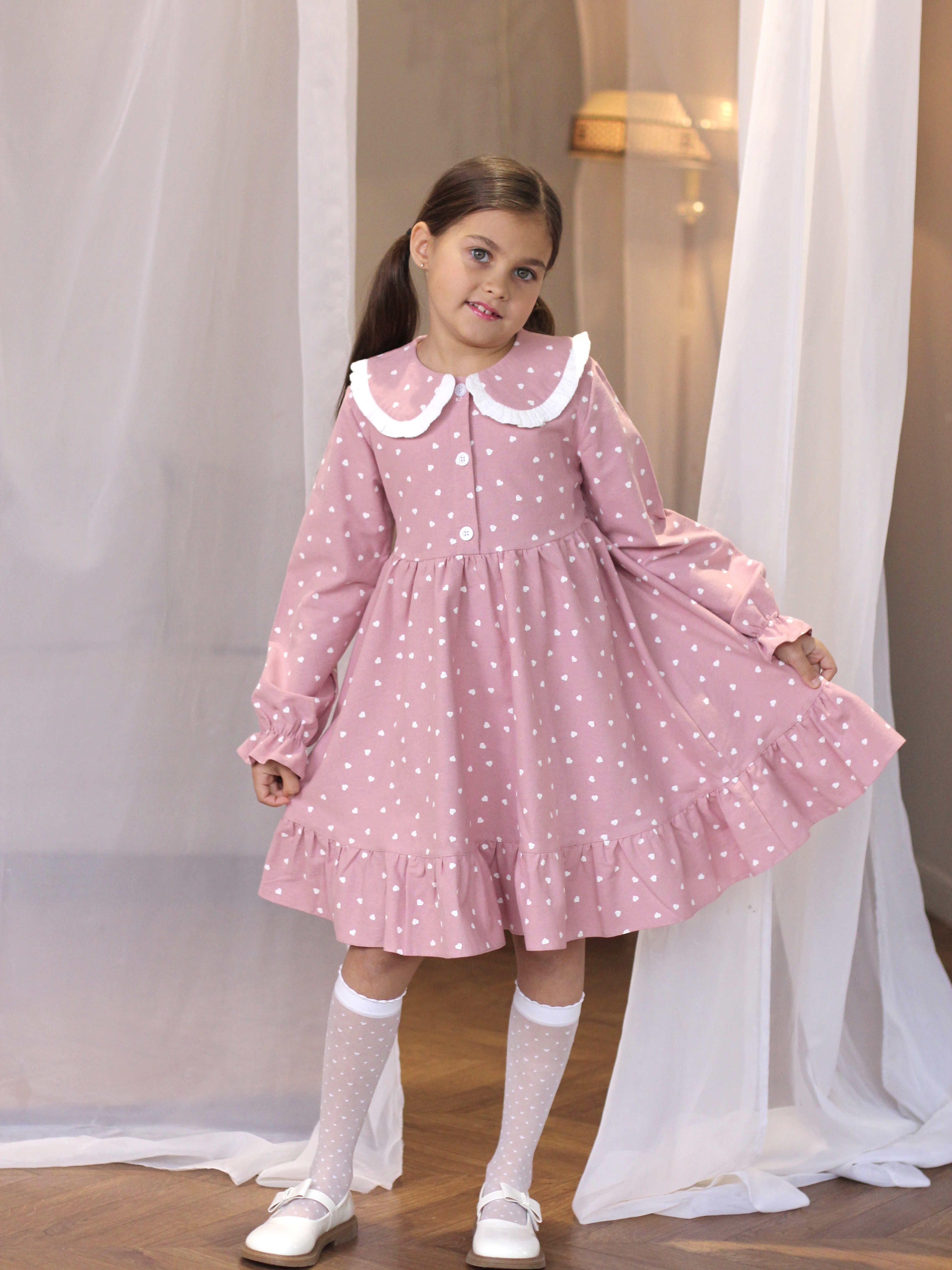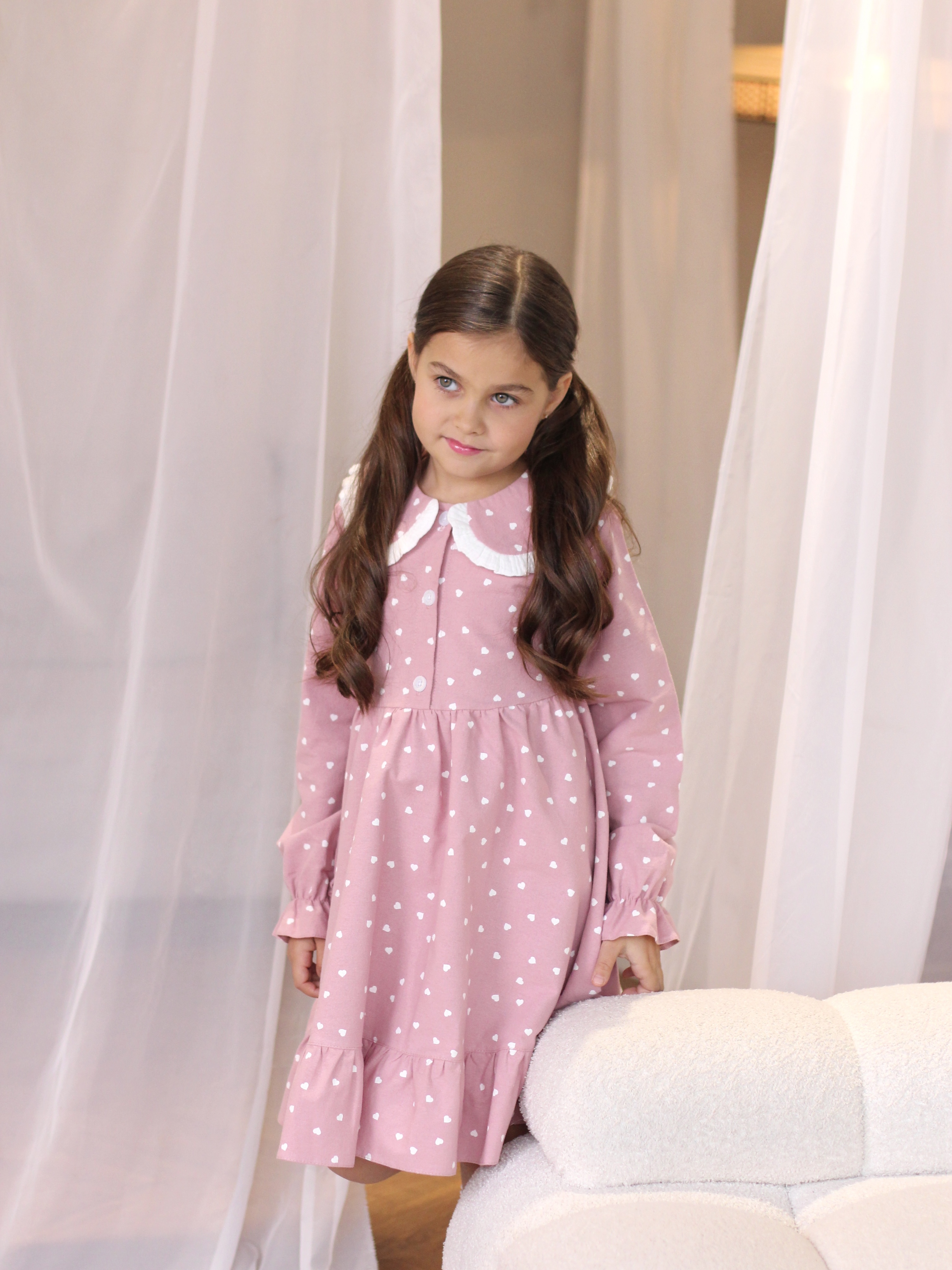 Платье из фланели с длинным рукавом «Сердечки», цвет розовый