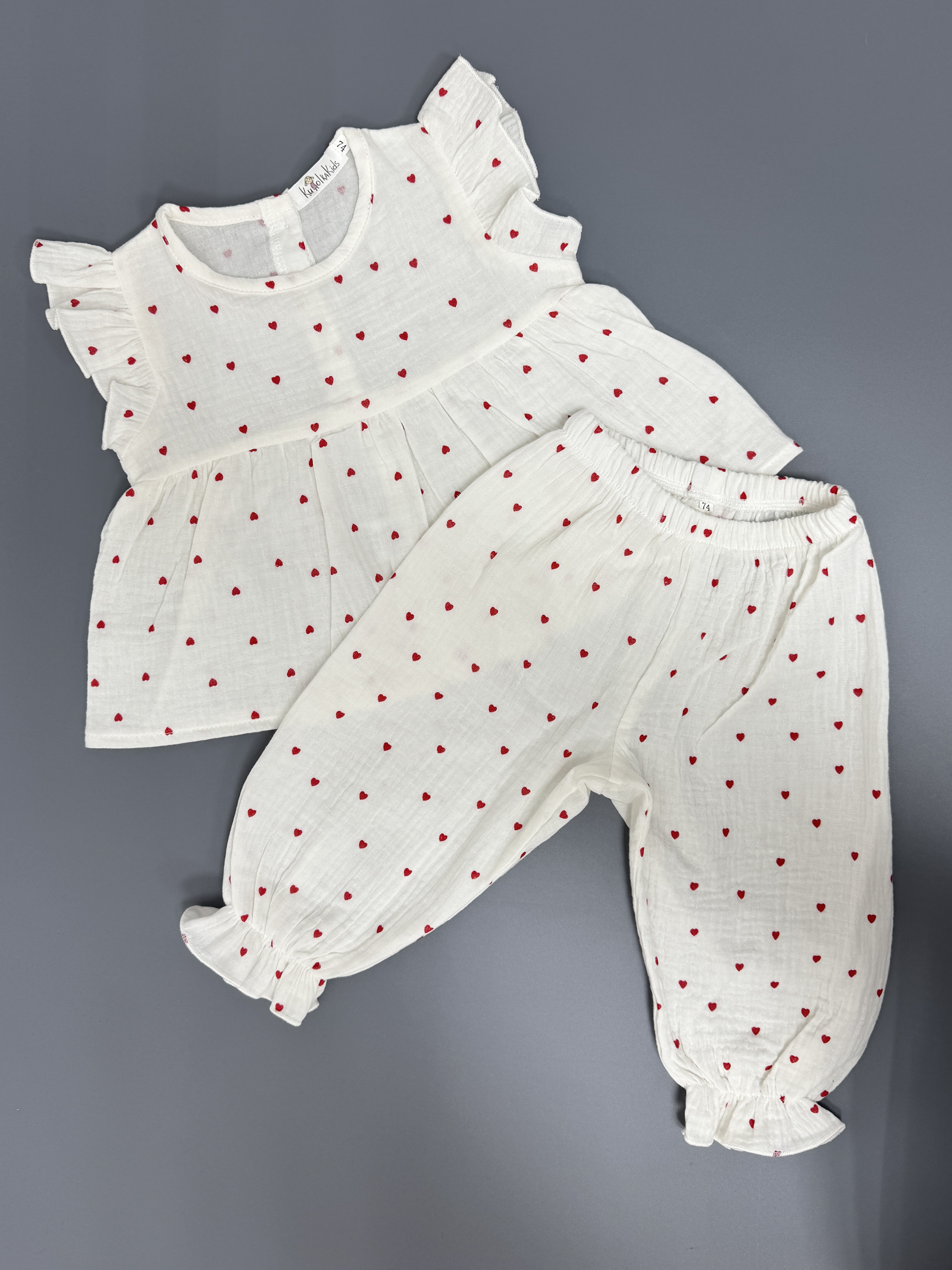 Костюм из муслина: туника и брючки «Сердечки»