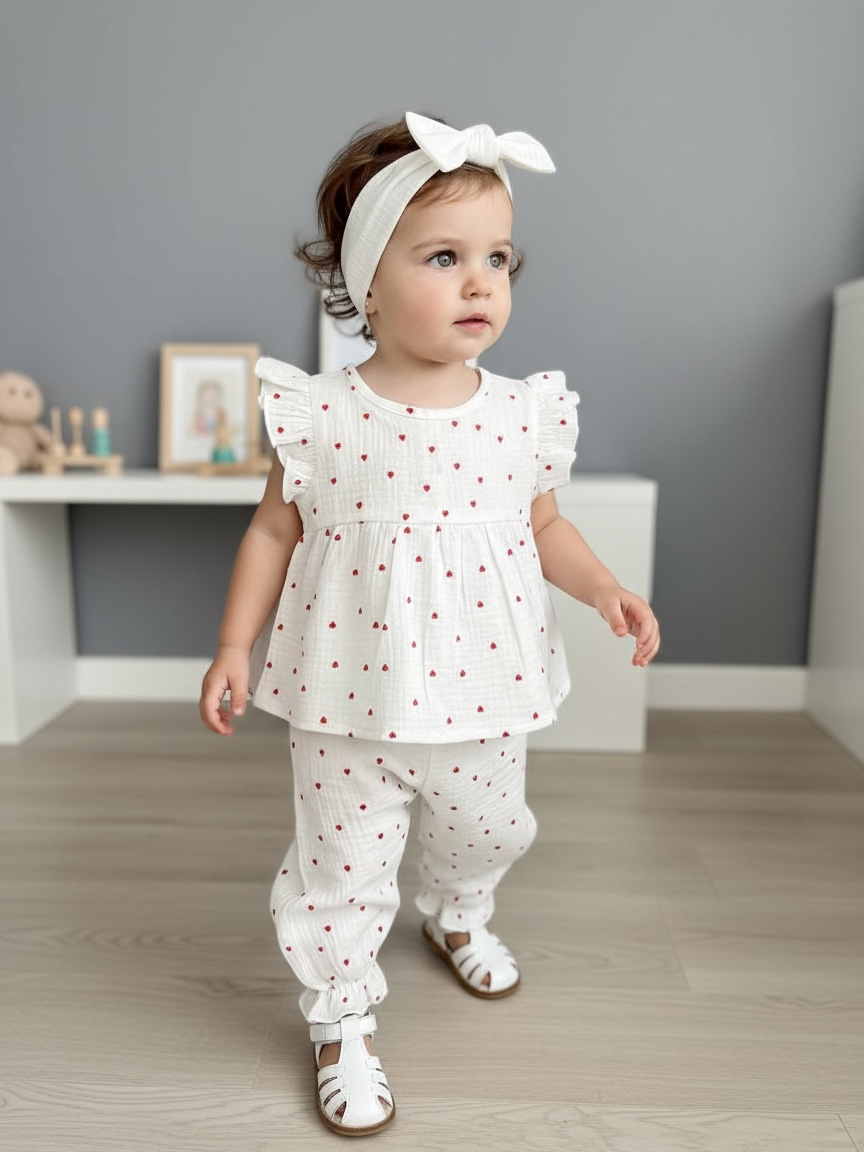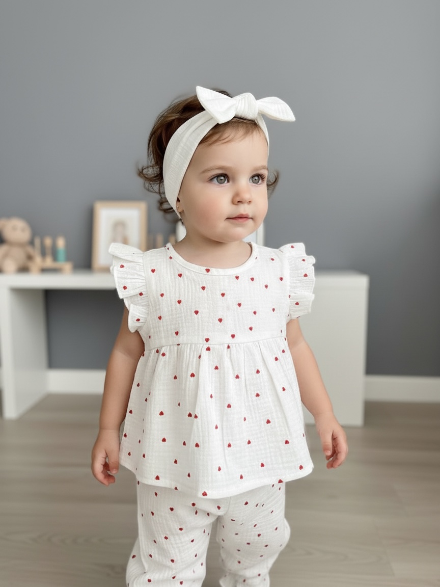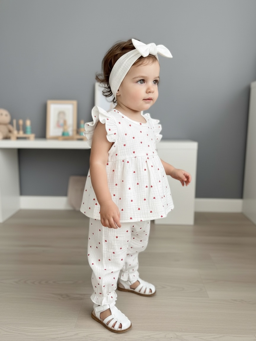 Идеальный летний костюм для малышей — туника с нежными крылышками свободного кроя и штанишки на мягкой резиночке. Лёгкий, воздушный и по-настоящему уютный — для прогулок, отпуска, праздника, игровой студии и тёплых домашних моментов.