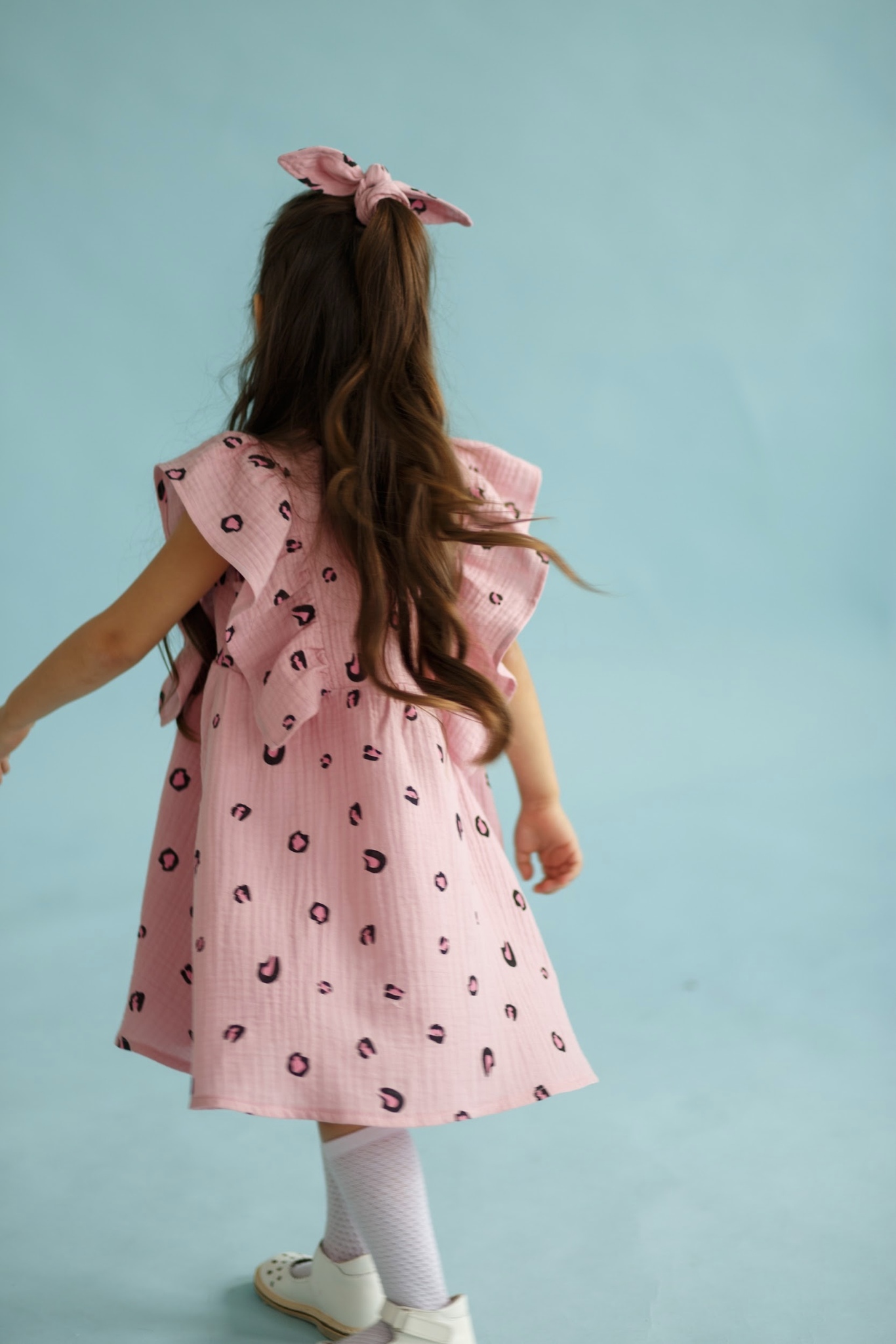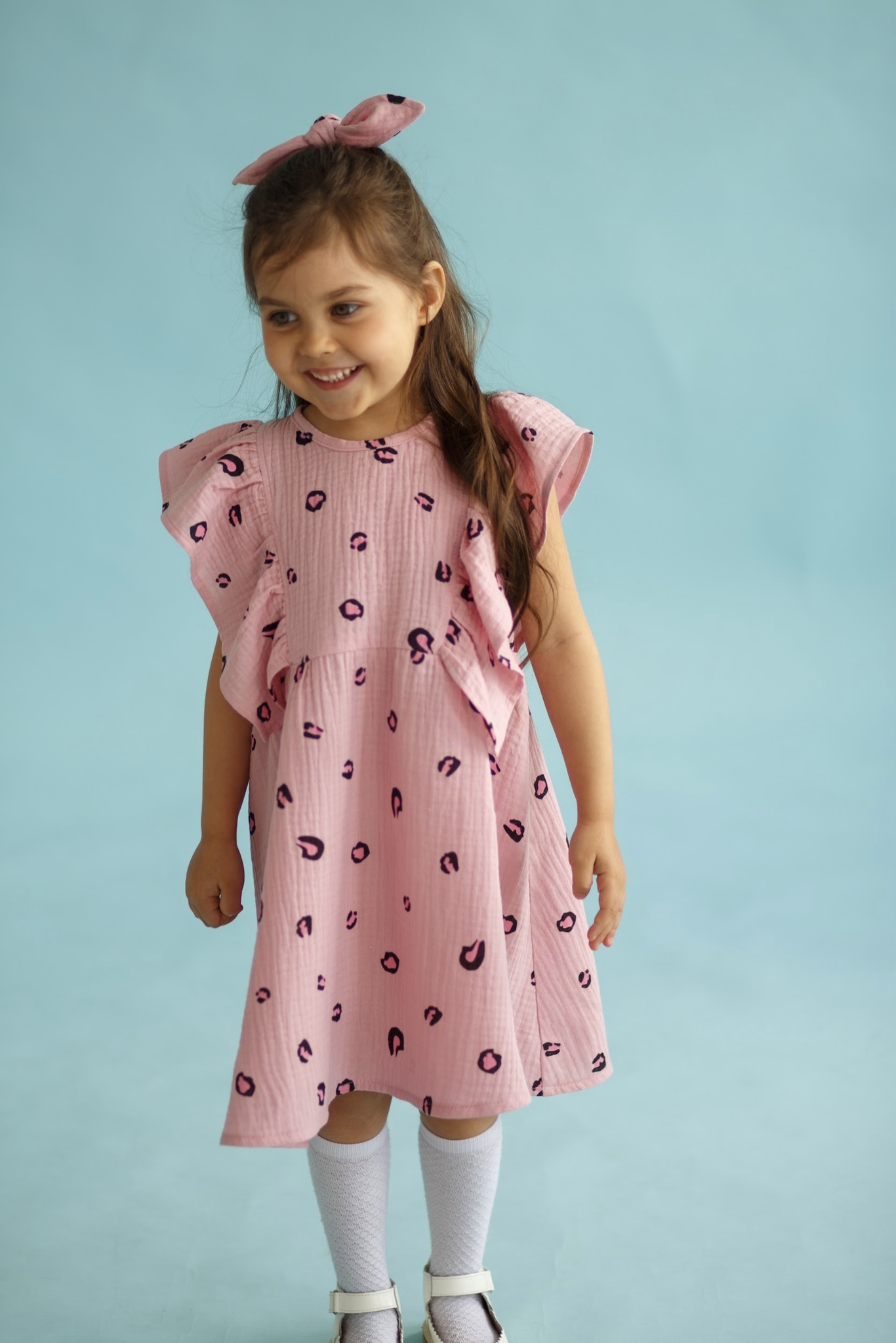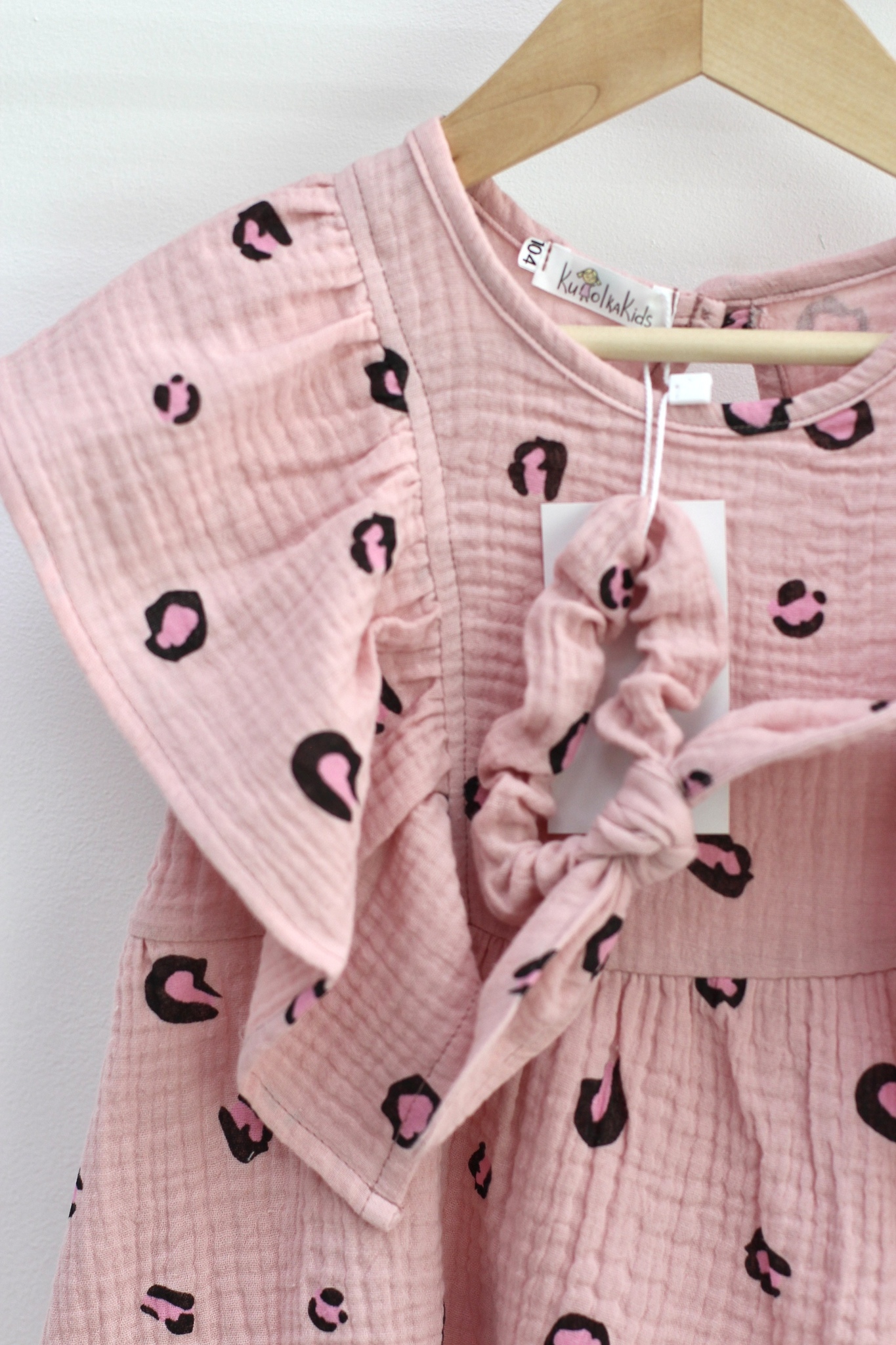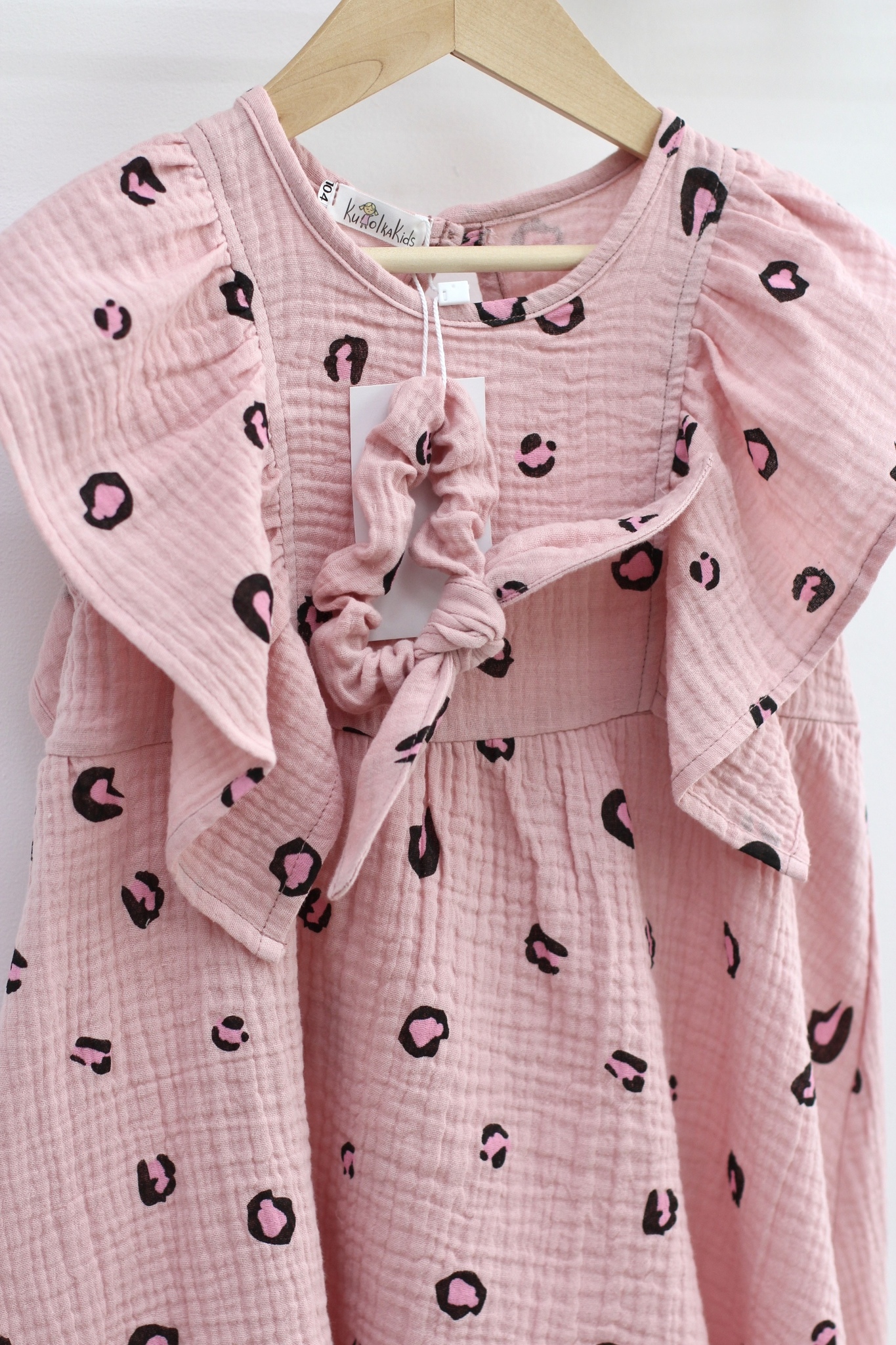Платье из муслина «Розовый лео» с резинкой для волос в комплекте