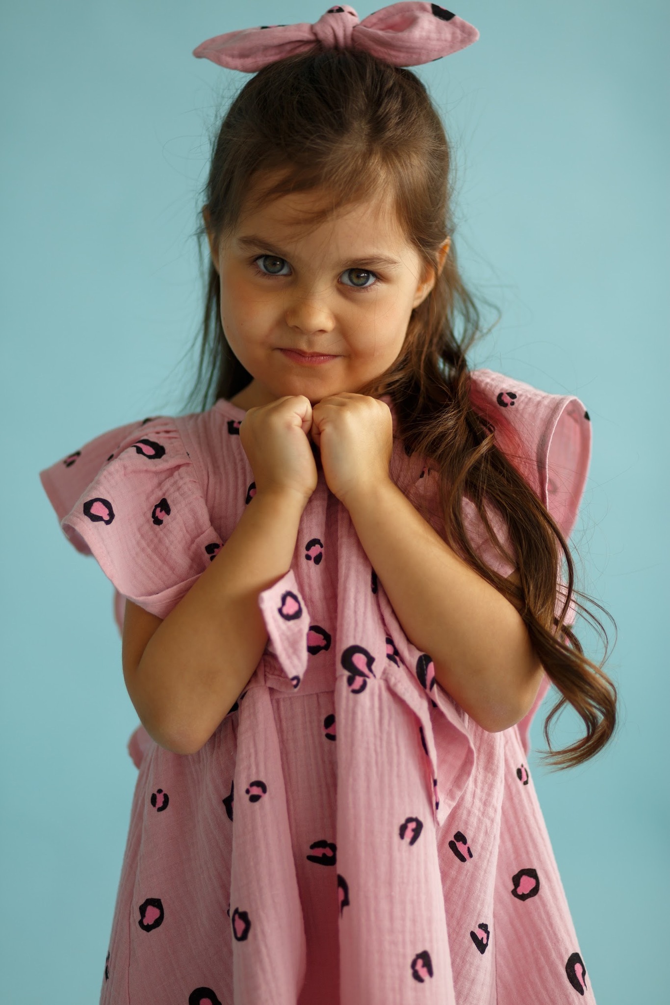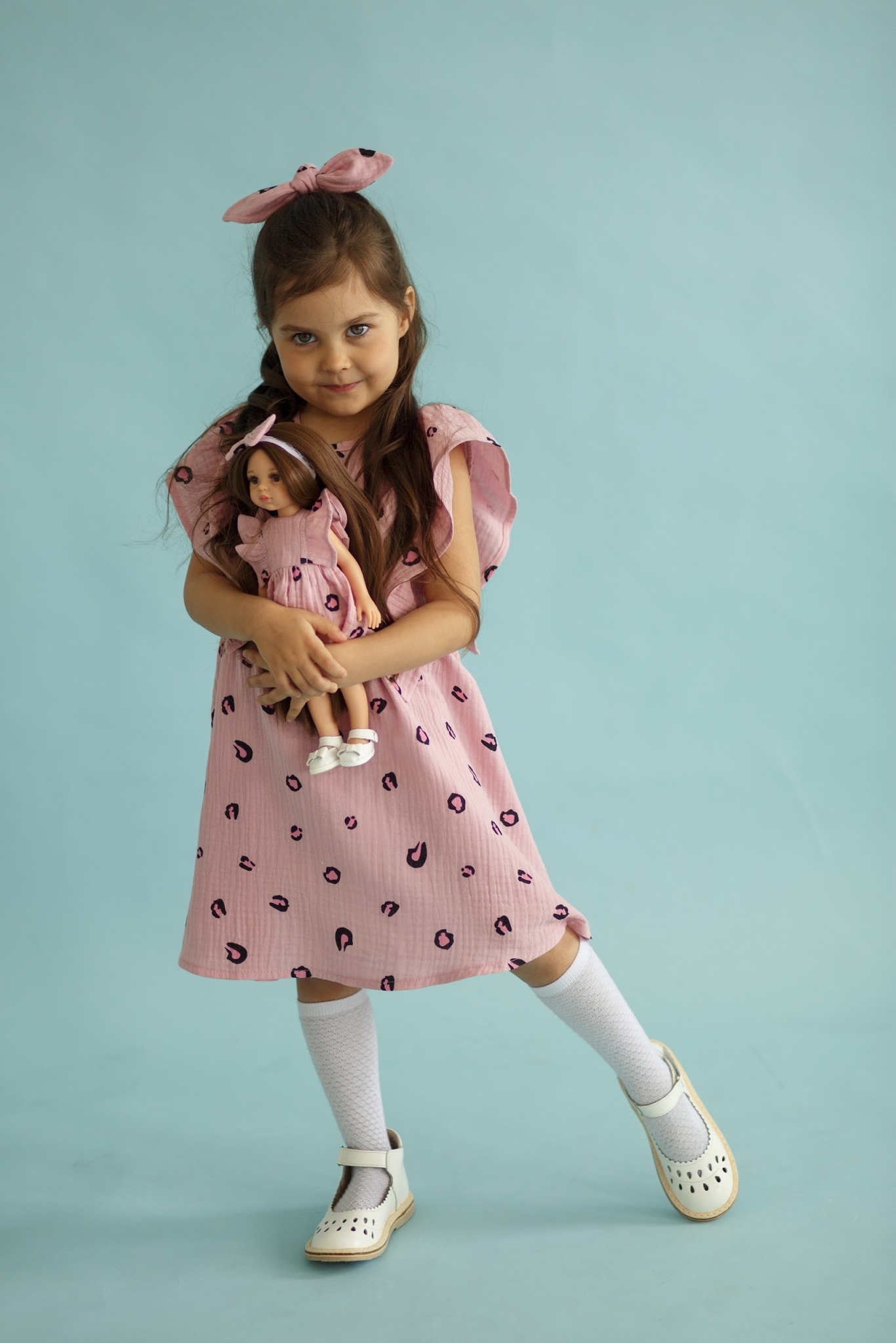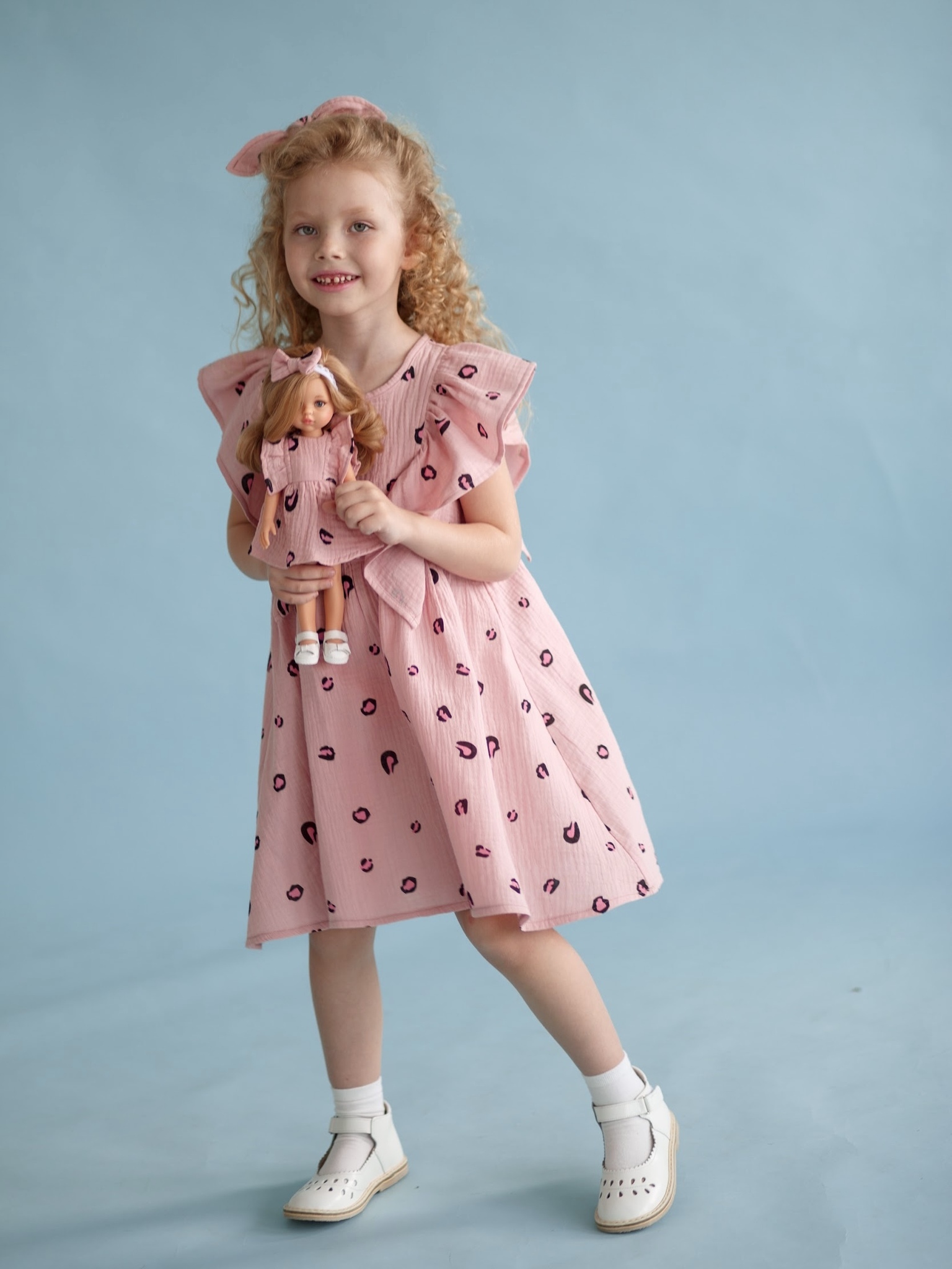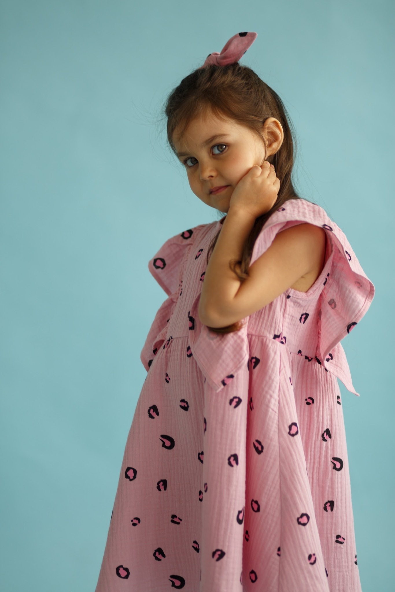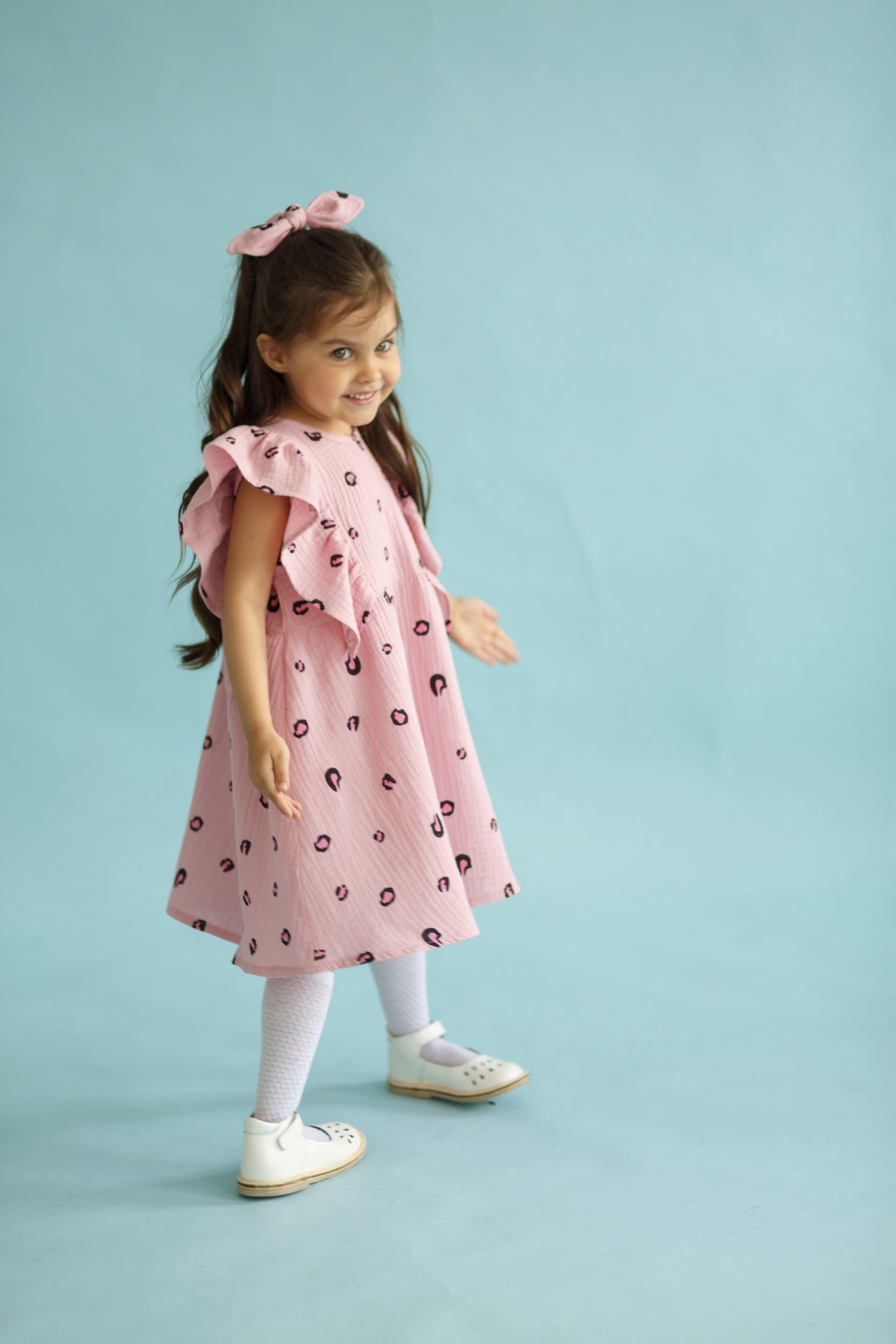 Платье из муслина «Розовый лео» с резинкой для волос в комплекте