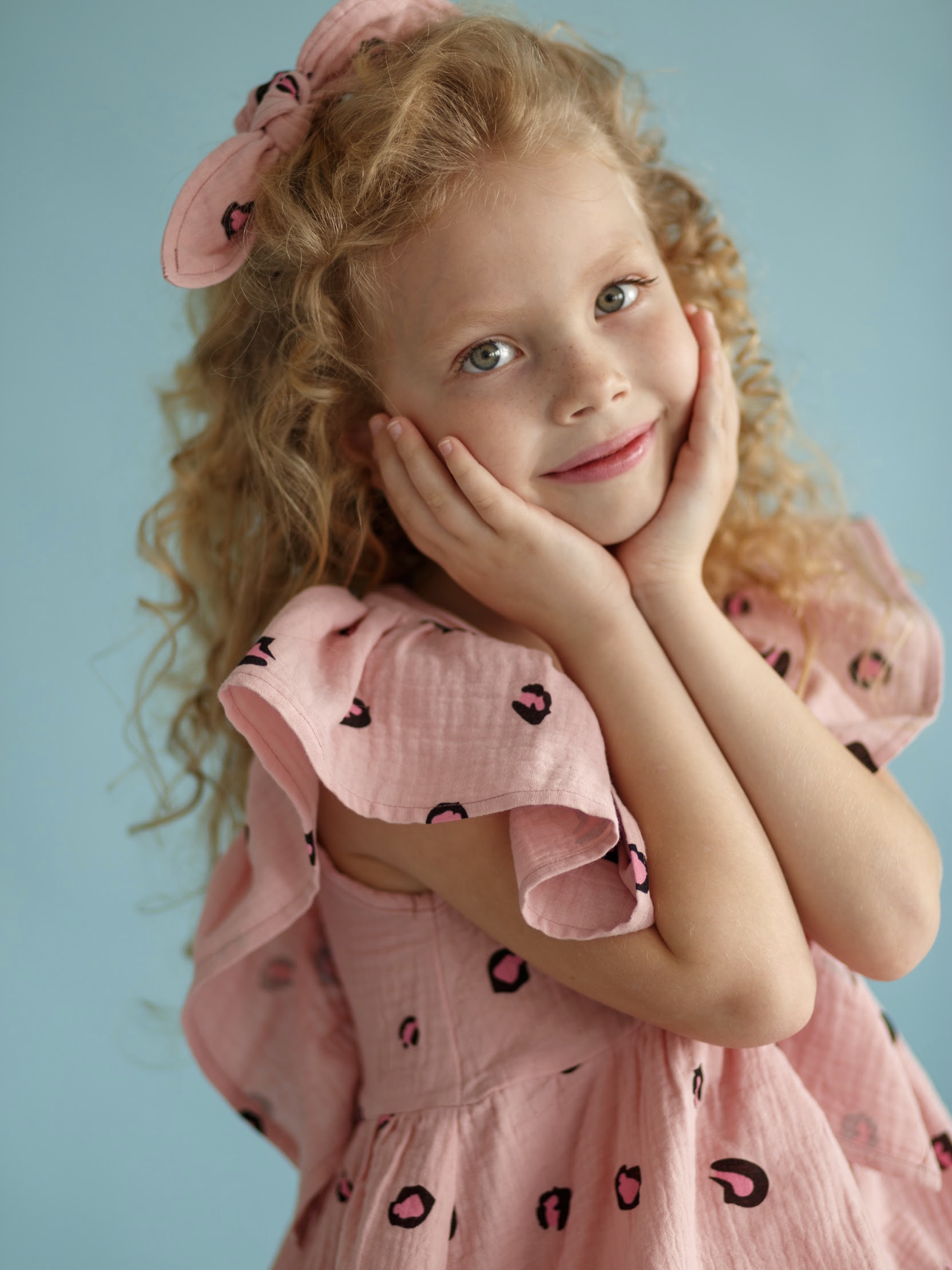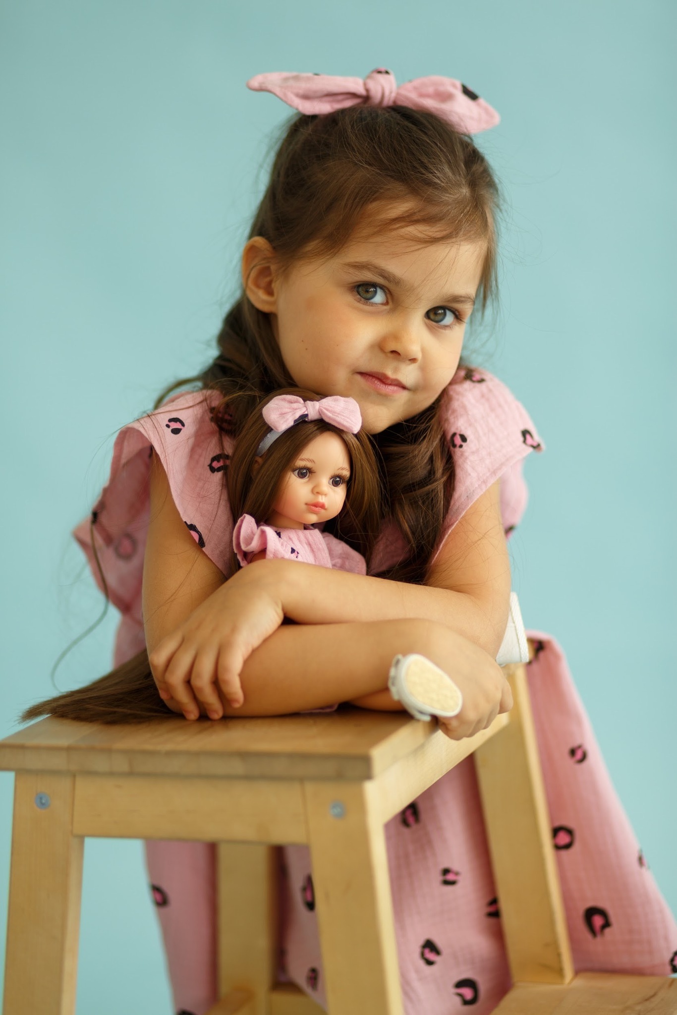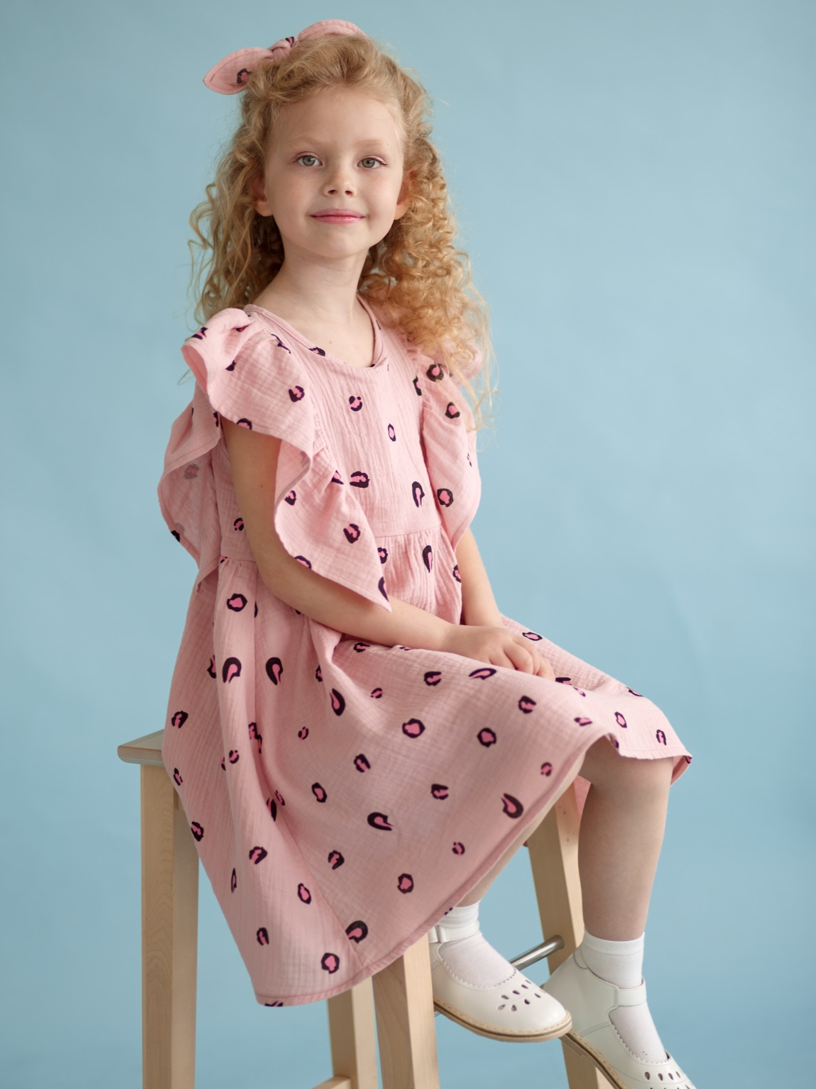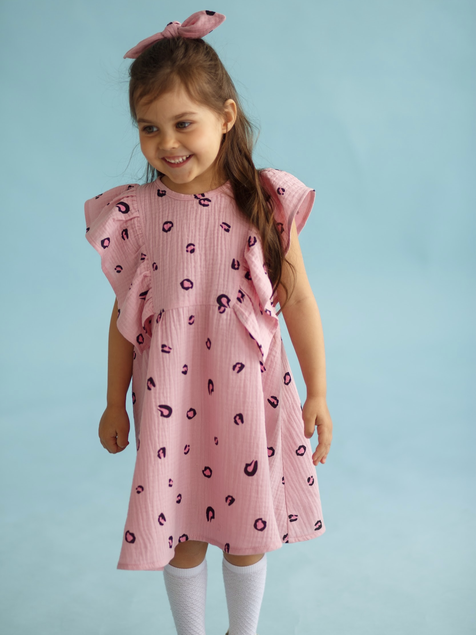 Платье из муслина «Розовый лео» с резинкой для волос в комплекте