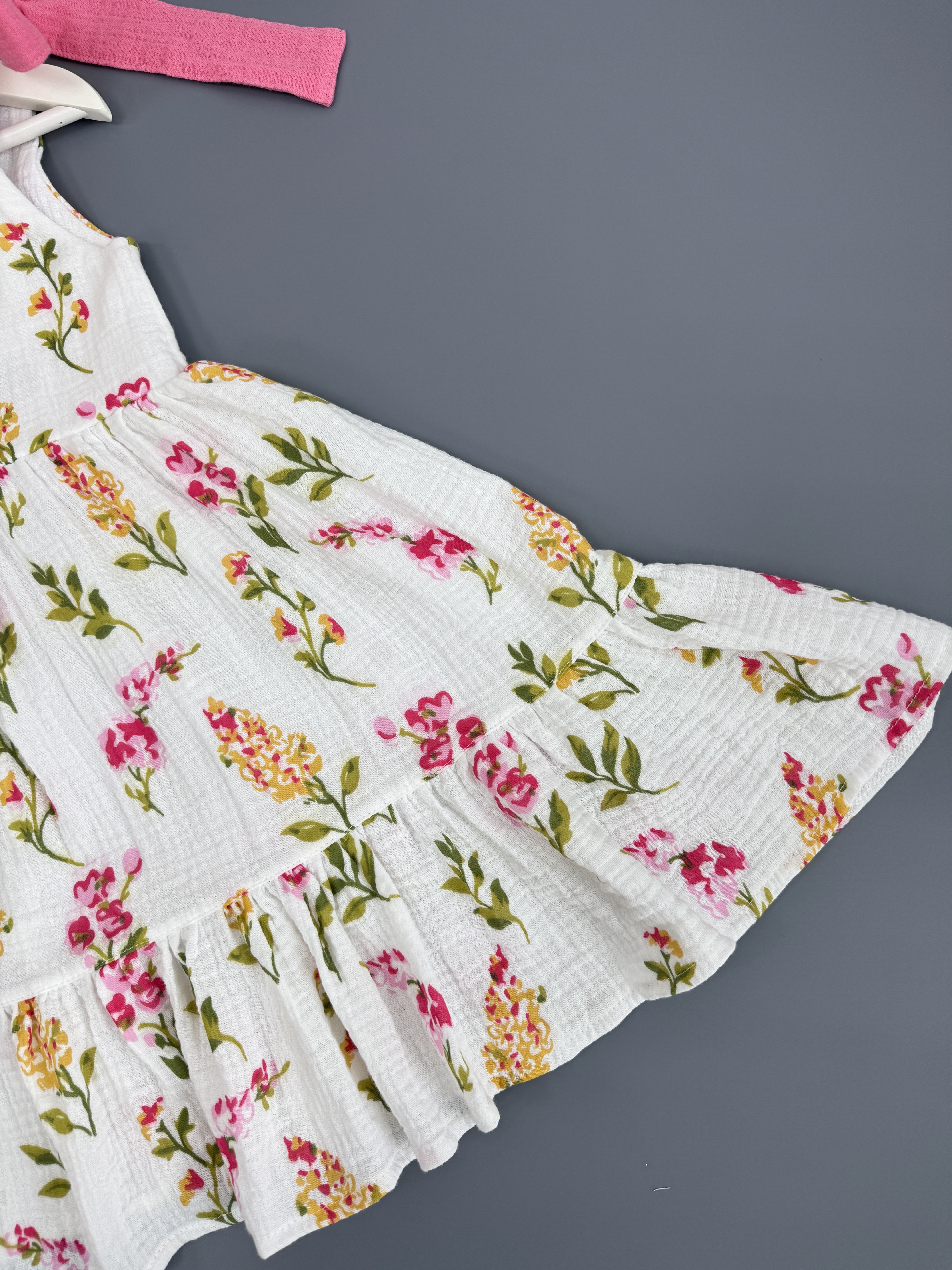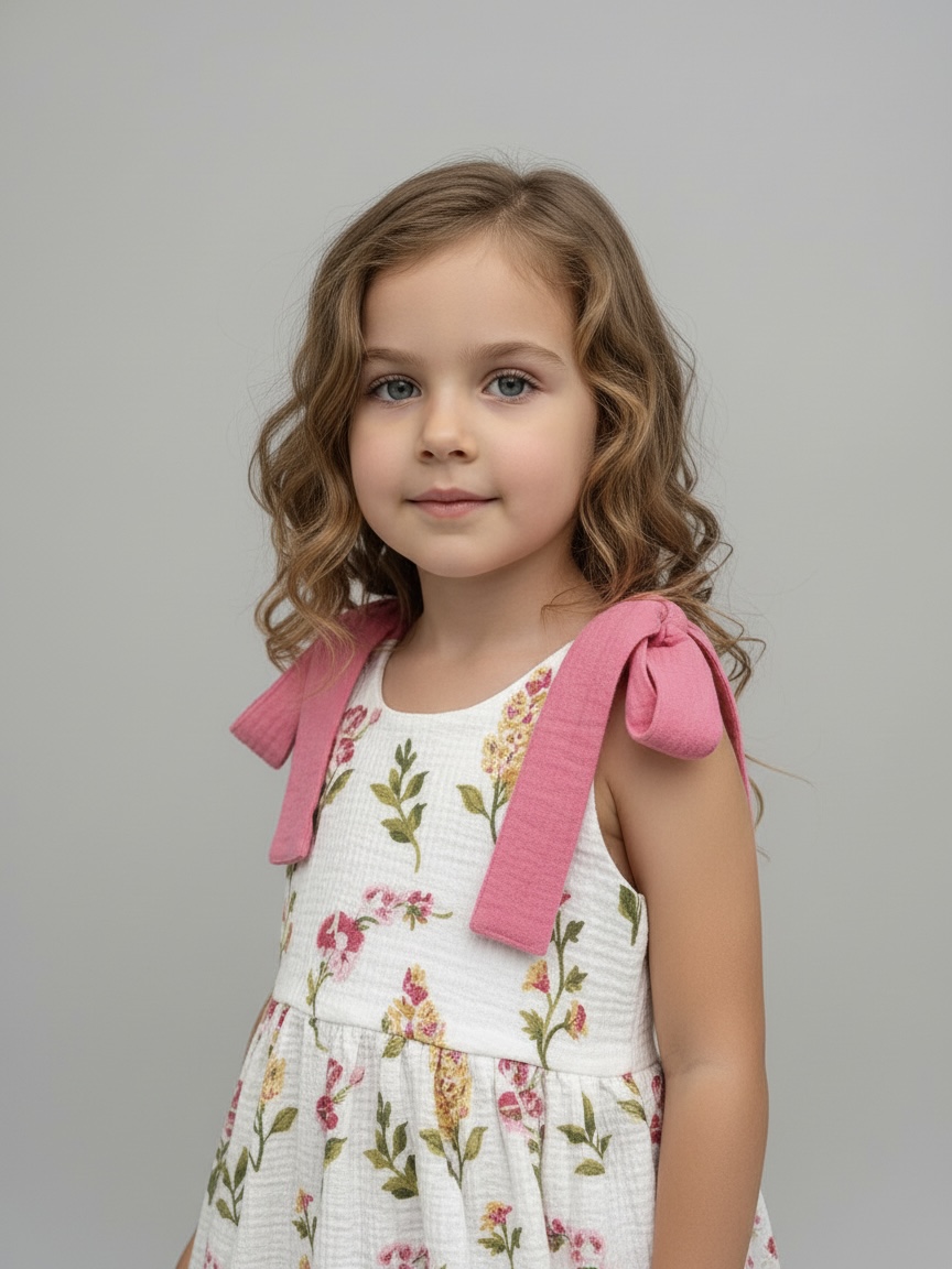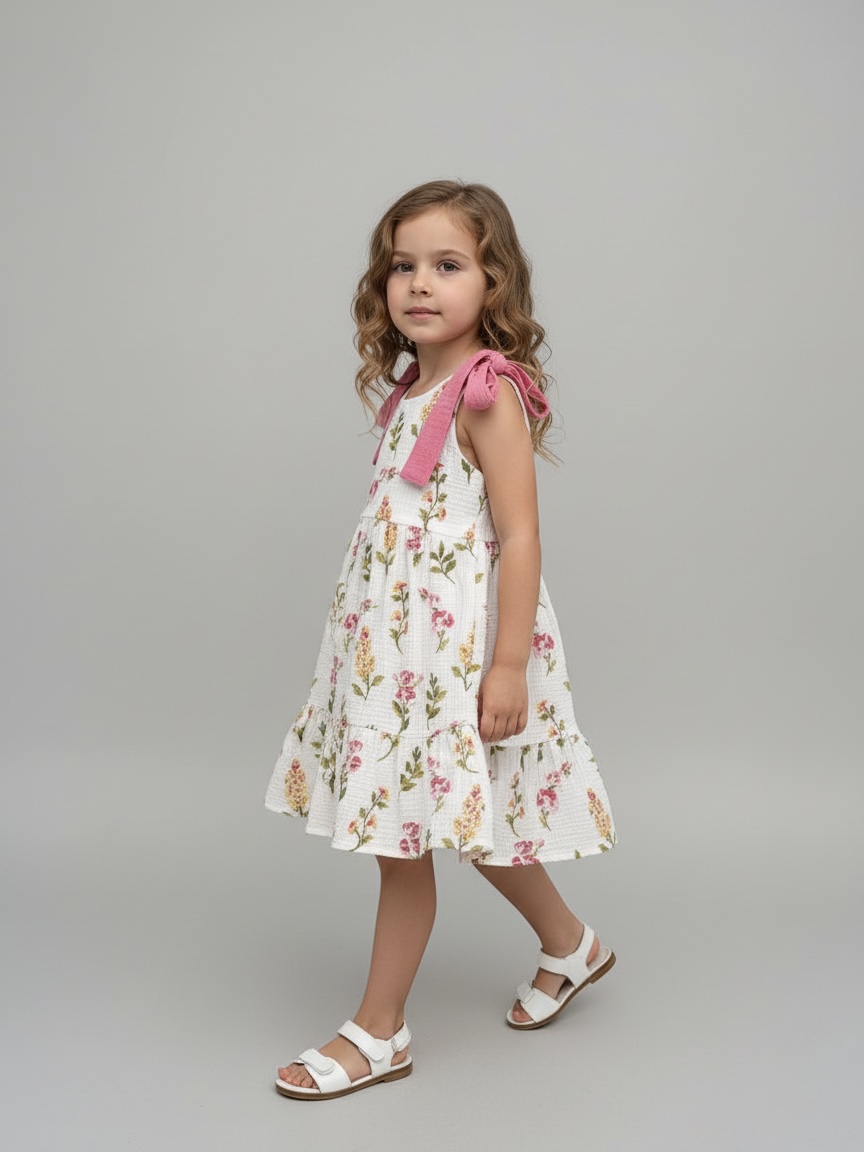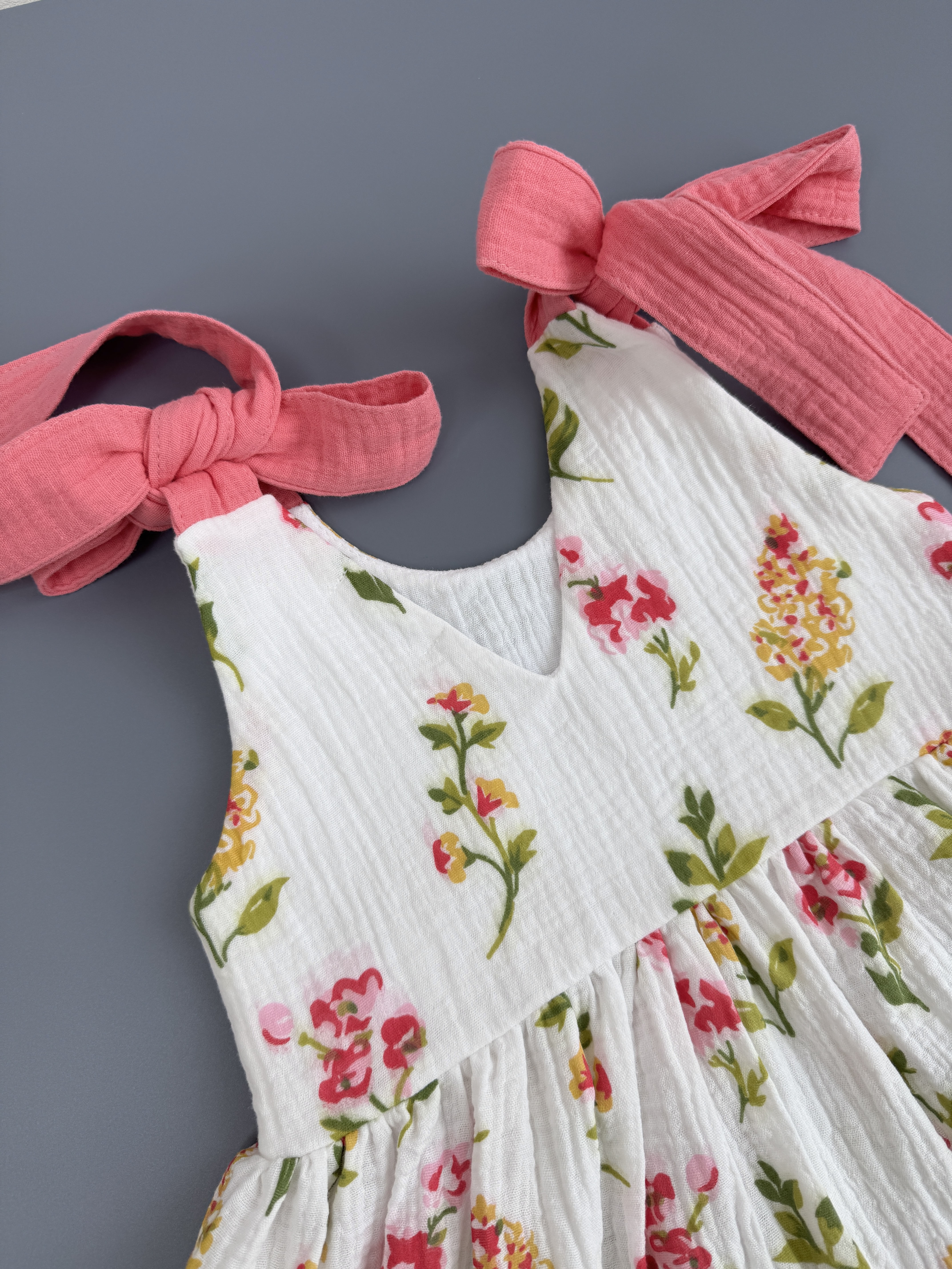 В легком муслиновом сарафане благодаря натуральному составу не жарко летом. Летнее платье комфортного кроя с ленточками на плечах, с помощью которых можно регулировать длину платья. Идеально подойдет для отпуска на море, для летних прогулок, садика, на утренник и на День рождения.