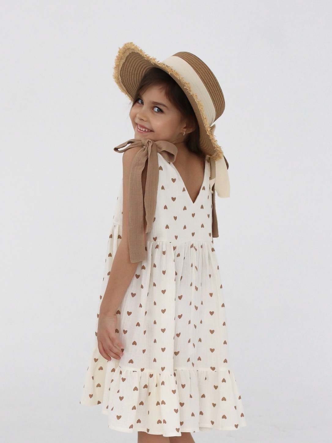 В легком муслиновом сарафане благодаря натуральному составу не жарко летом. Летнее платье комфортного кроя с ленточками на плечах, с помощью которых можно регулировать длину платья. Идеально подойдет для отпуска на море, для летних прогулок, садика, на утренник и на День рождения.